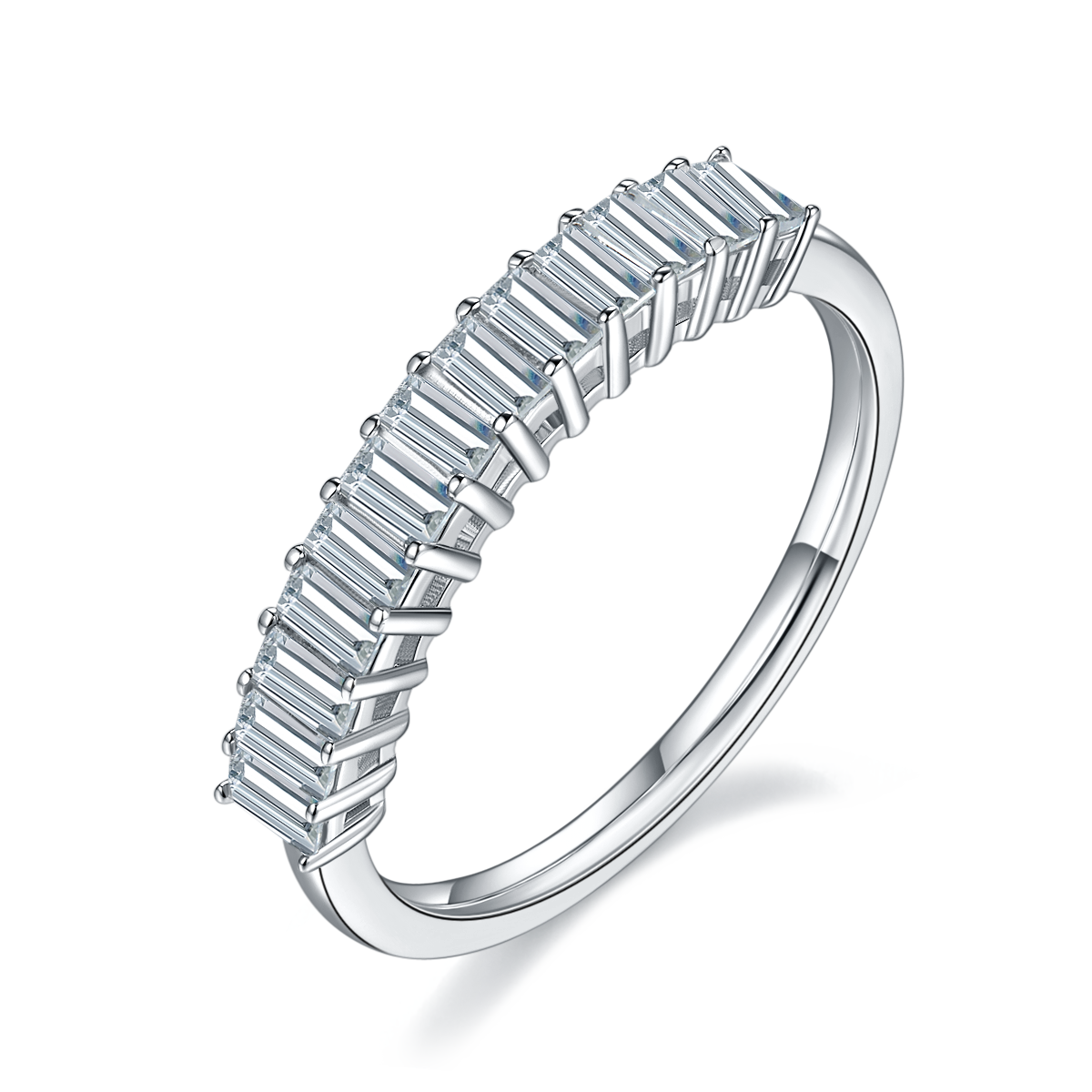 This half eternity ring features setting with 13 Vintage Emerald Cut Moissanite stones. The fashionable and exquisite design is suitable for various occasions and is your perfect choice to show yourself.
