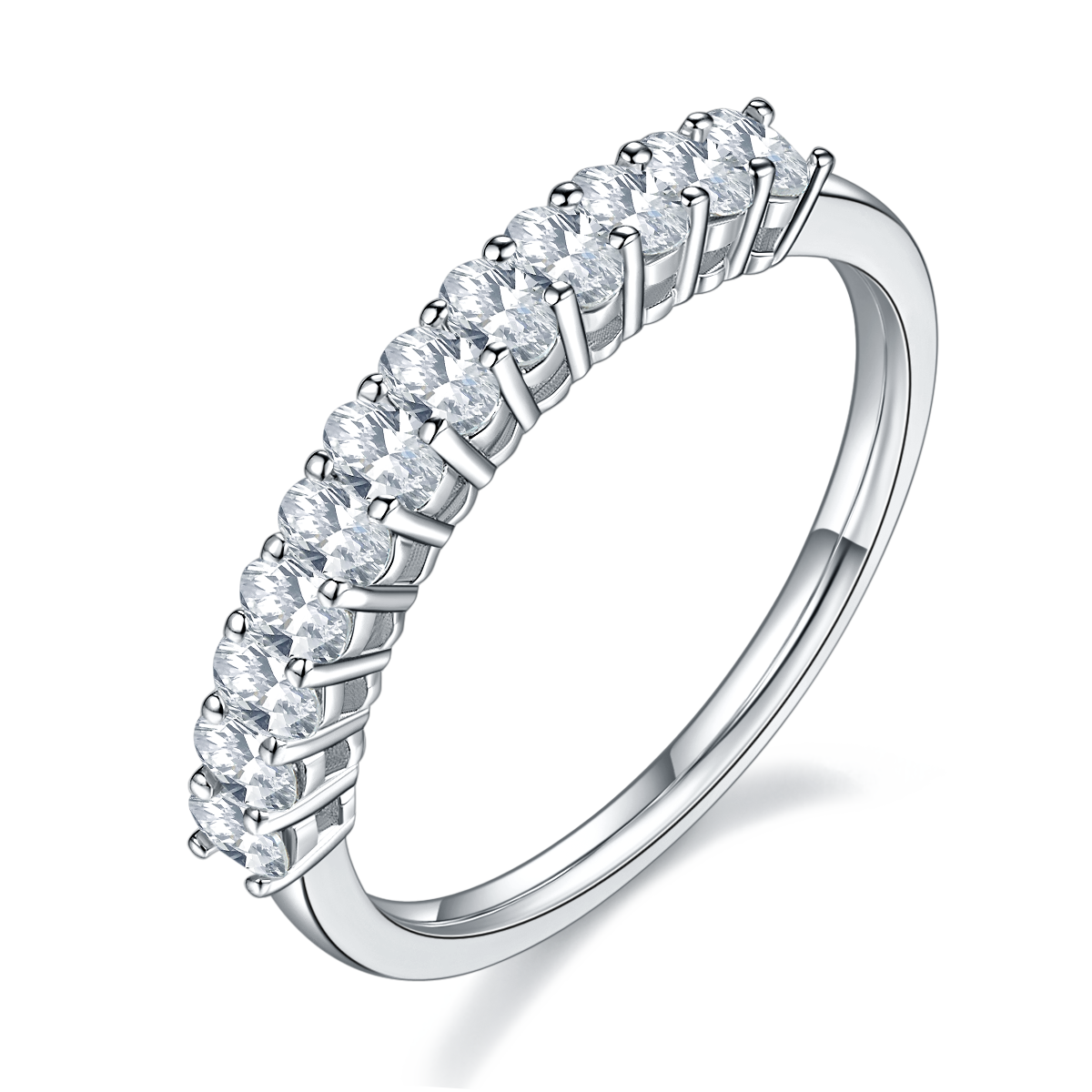 This Half Eternity Moissanite ring features setting with 10 tranditional oval shape Moissanite stones. The fashionable and exquisite design is suitable for various occasions and is your perfect choice to show yourself.