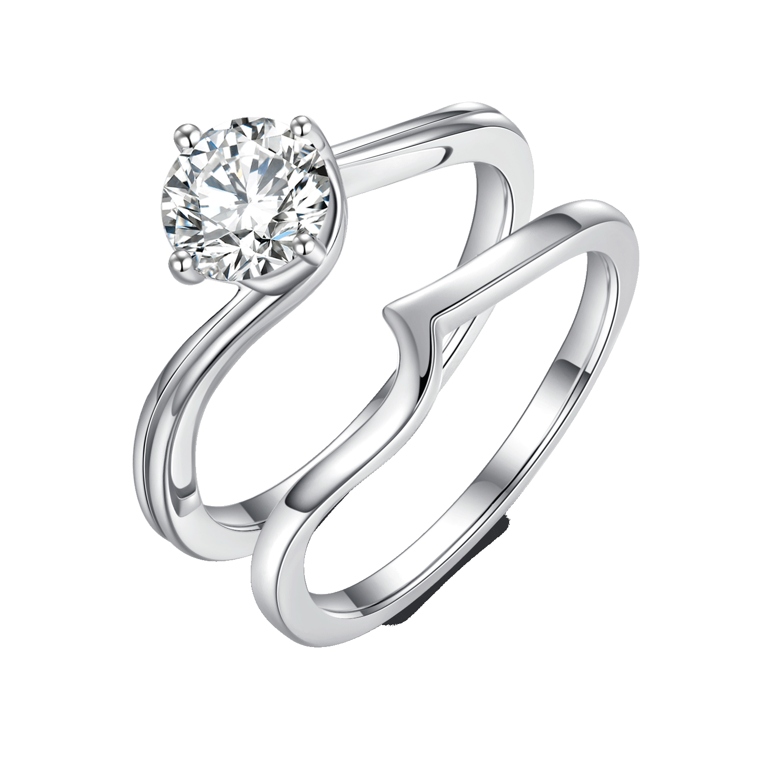 This Round Moissanite Twist Rings Pack for Women features a round cut Moissanite ring and a polished ring with a stylish twist arm. creating a stunning jewelry piece. The superior craftsmanship of these beautiful rings make them perfect for any occasion.