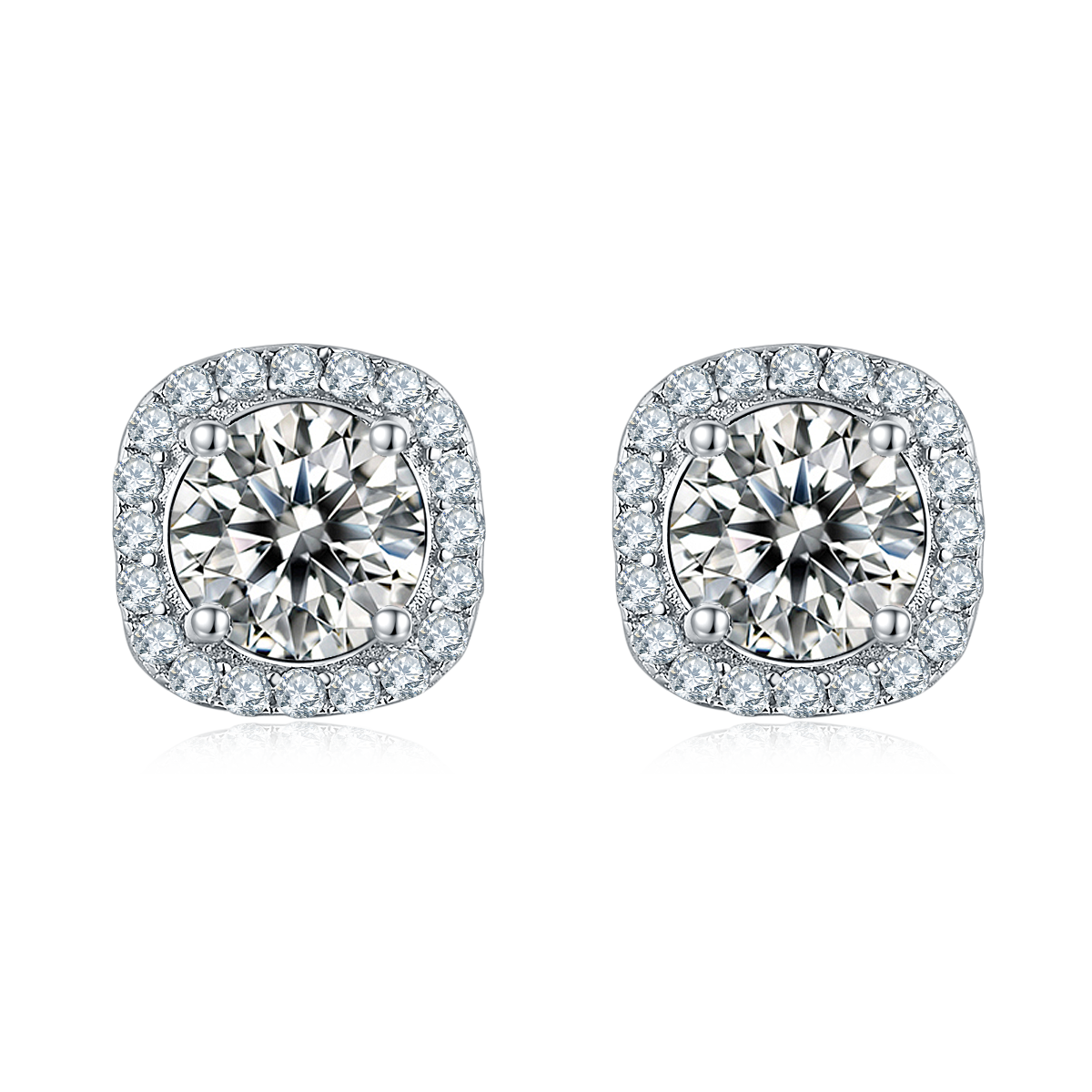 This exquisite earrings features a classical round cut Moissanite stone as its centerpiece. which is known for its brilliant sparkle and exceptional durability.
