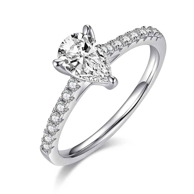 This exquisite ring features a classical water drop shape Moissanite and is set with Moissanite on the ring band to make the entire ring more sparkly. In addition. the three-prongs design makes the Moissanite stone more prominent. This ring has long-lasting luster and is not easy to oxidize or wear-resistant. It's also not easy to cause allergies.This ring is the preferred gift for birthdays. anniversaries or Valentine's Day.