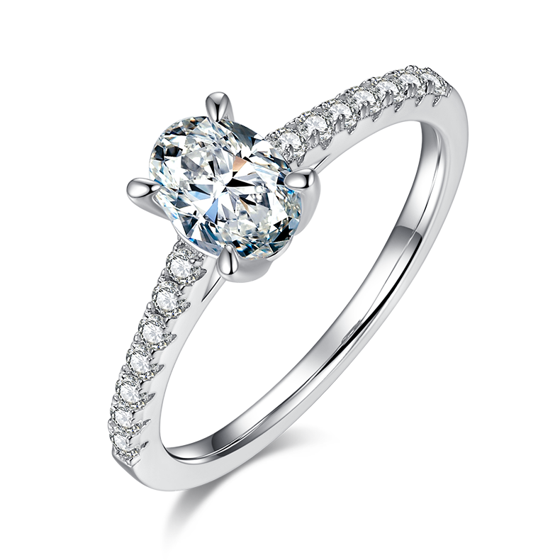 This exquisite ring features a tranditional oval shape Moissanite and is set with Moissanite on the ring band to make the entire ring more shinny. In addition. the four-prongs design makes the Moissanite stone more prominent. This ring has long-lasting luster and is not easy to oxidize or wear-resistant. It's also not easy to cause allergies.This ring is the preferred gift for birthdays. anniversaries or Valentine's Day.