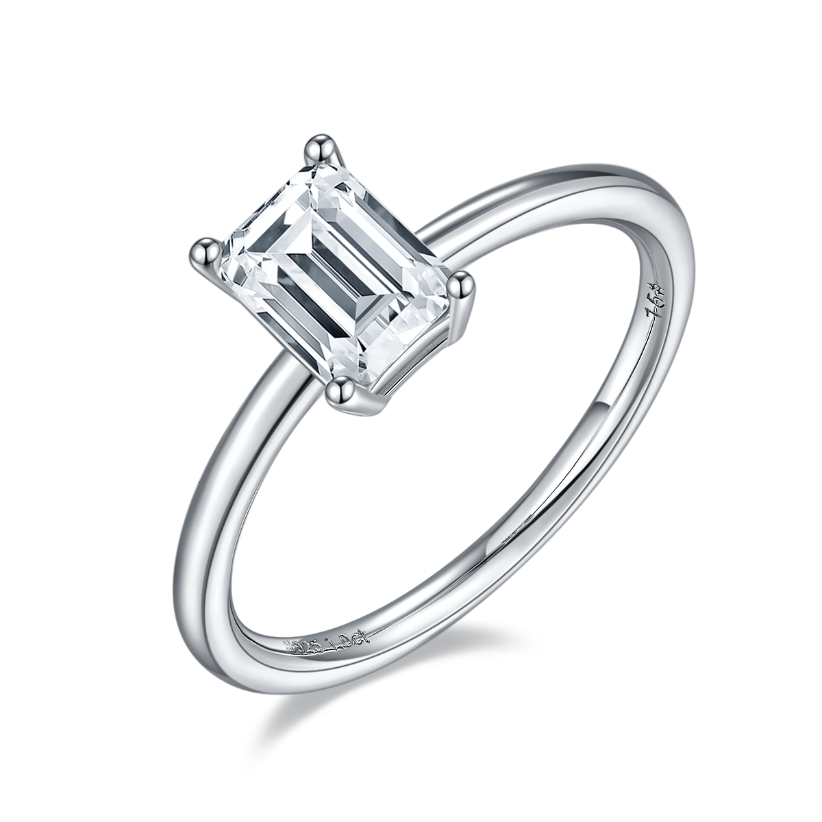 This exquisite ring features a vintage emerald cut Moissanite. The polished ring band to make the entire ring simple and elegance. In addition. the four-prongs design makes the Moissanite more prominent. This ring is very sutible for daily wear and is the preferred gift for birthdays. anniversaries or Valentine's Day.