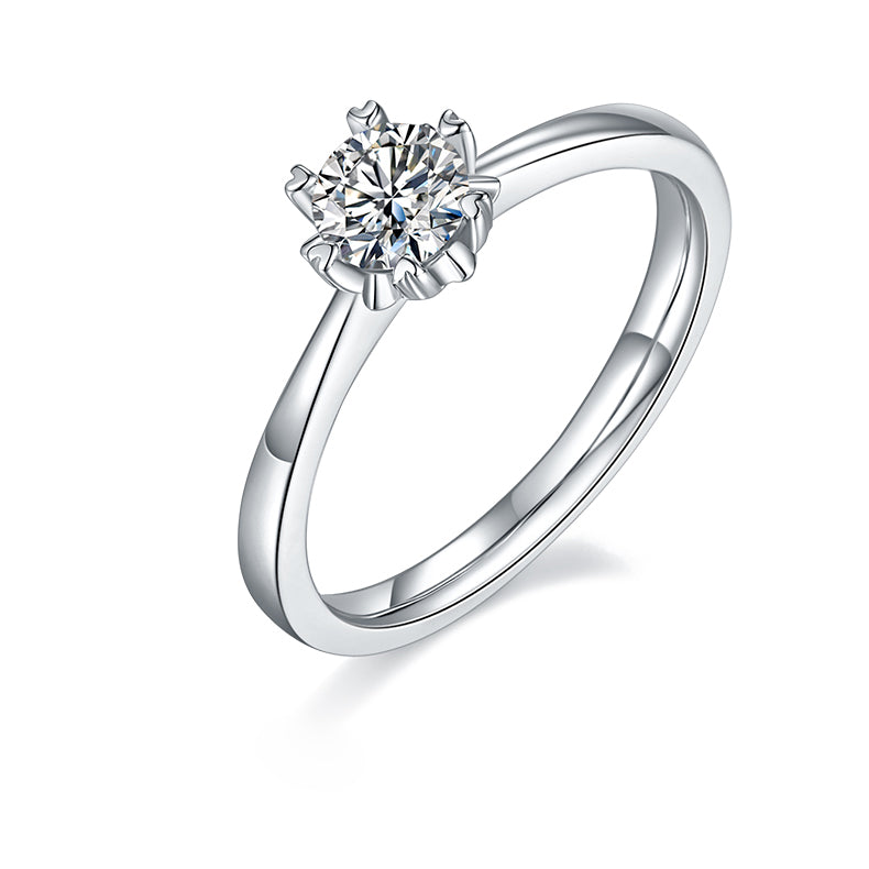 This Classic Round Cut Moissanite Stone Ring features a 0.5ct round cut Moissanite stone set in a six heart-shaped prong. This classic timeless design adds sophistication and sparkle to any outfit. Carefully crafted for durability. this ring is perfect for everyday wear.