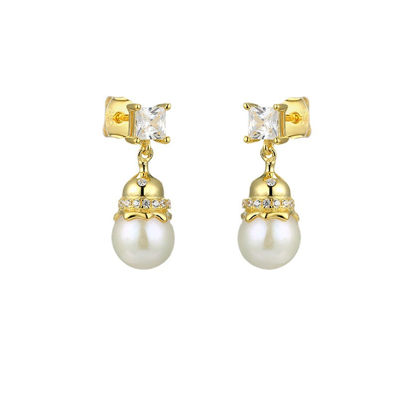 This elegant Freshwater Pearl Gourd with Princess Cut Zircon Silver Drop Earrings will add a timeless and gorgeous touch to any outfit. Featuring a freshwater pearl gourd pendant and a princess cut zircon. this earrings are sure to make a statement.