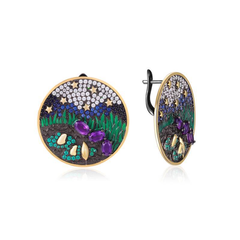 This Natural Amethyst Circle Sterling Silver Studs for Women feature a garden circle pattern of vibrant gemstones. offering a sophisticated look to any outfit. Crafted from sterling silver. this earrings is a unique and stylish accessory for any modern woman.