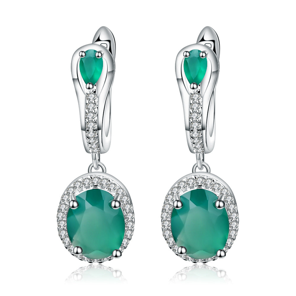 This Green Agate Soleste Halo Oval Shape Silver Drop Earrings make an elegant addition to any jewelry collection. Crafted with sterling silver. it feature a shimmering oval shaped green agate pendant is finished with a soleste halo that adds to the opulence. It's an ideal gift for any special occasion.