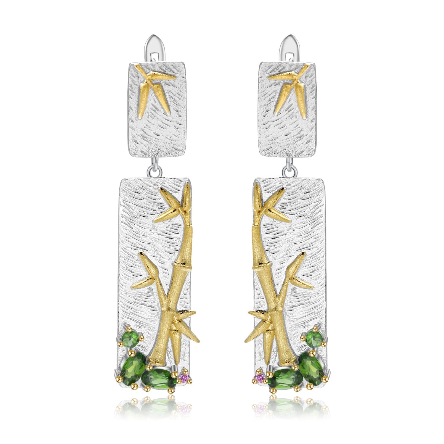 This Natural Colour Gemstones Rectangle earrings for women feature a beautiful bamboo pattern. complemented by a sterling silver finish and colourful gemstones. making them an unforgettable addition to any wardrobe. The versatile design makes this earrings perfect for any occasion.