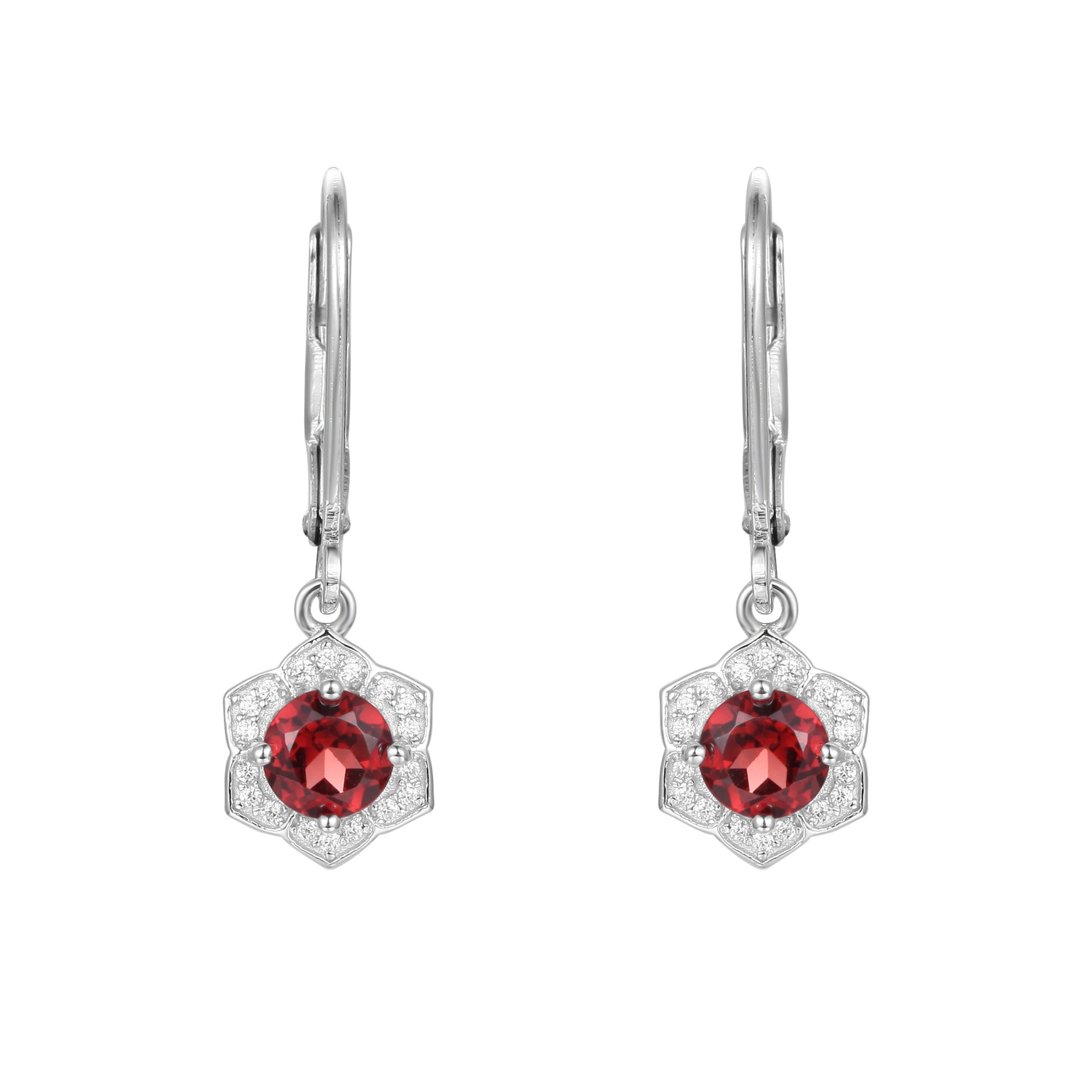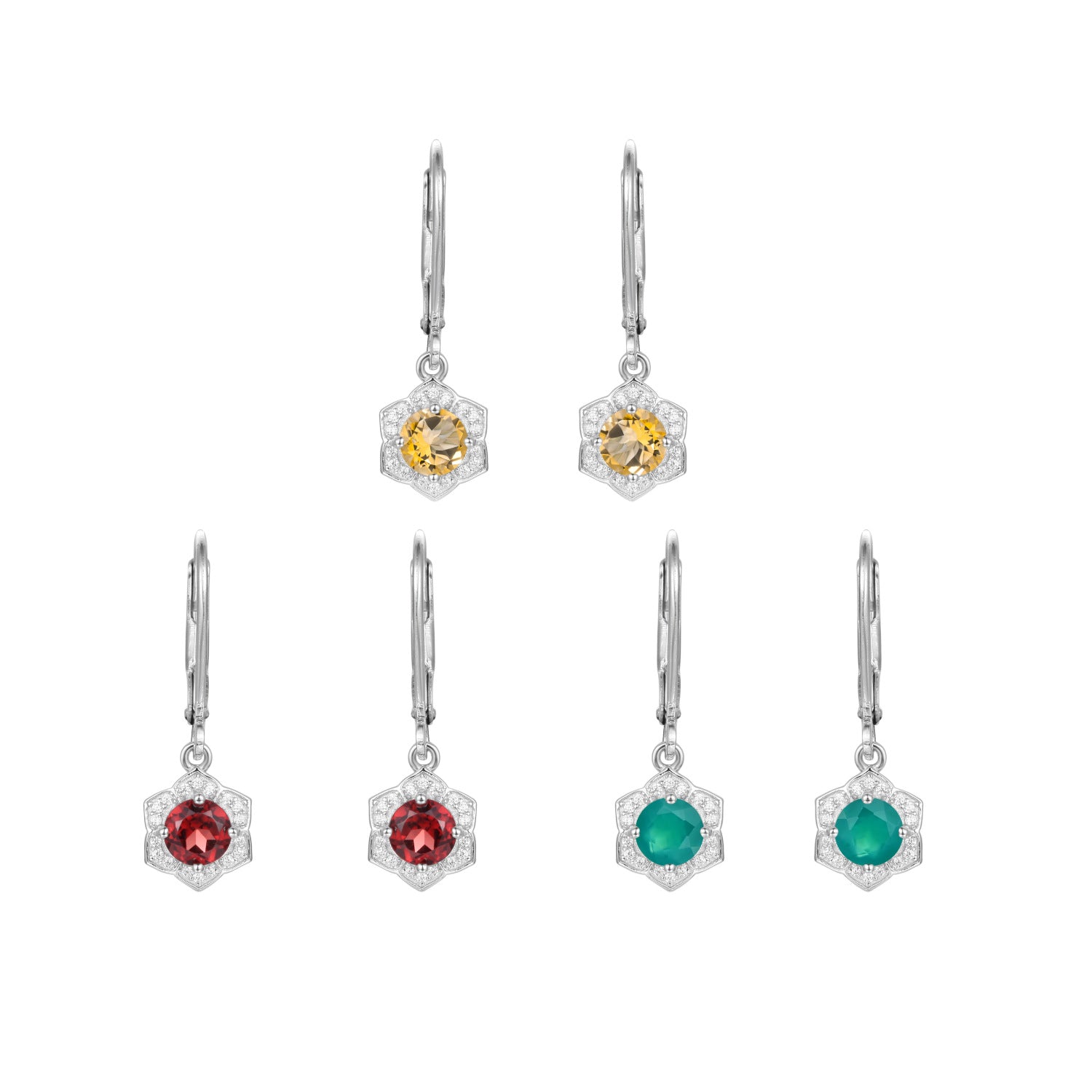Add some elegance to your look with these round natural gemstone earrings. featuring a petals halo design. Crafted in sterling silver. these earrings will complete your look with their unique and eye-catching design.