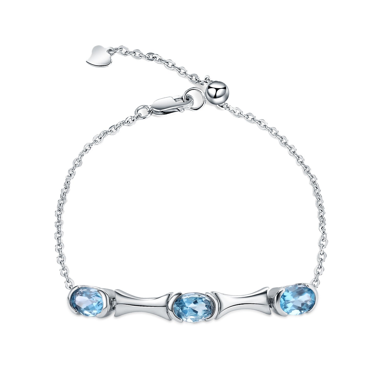 This elegant silver bracelet is adorned with three oval natural topaz for a sophisticated look. The topaz creates a subtle sparkle that enhances any outfit. It's a great accessory for any special occasion.