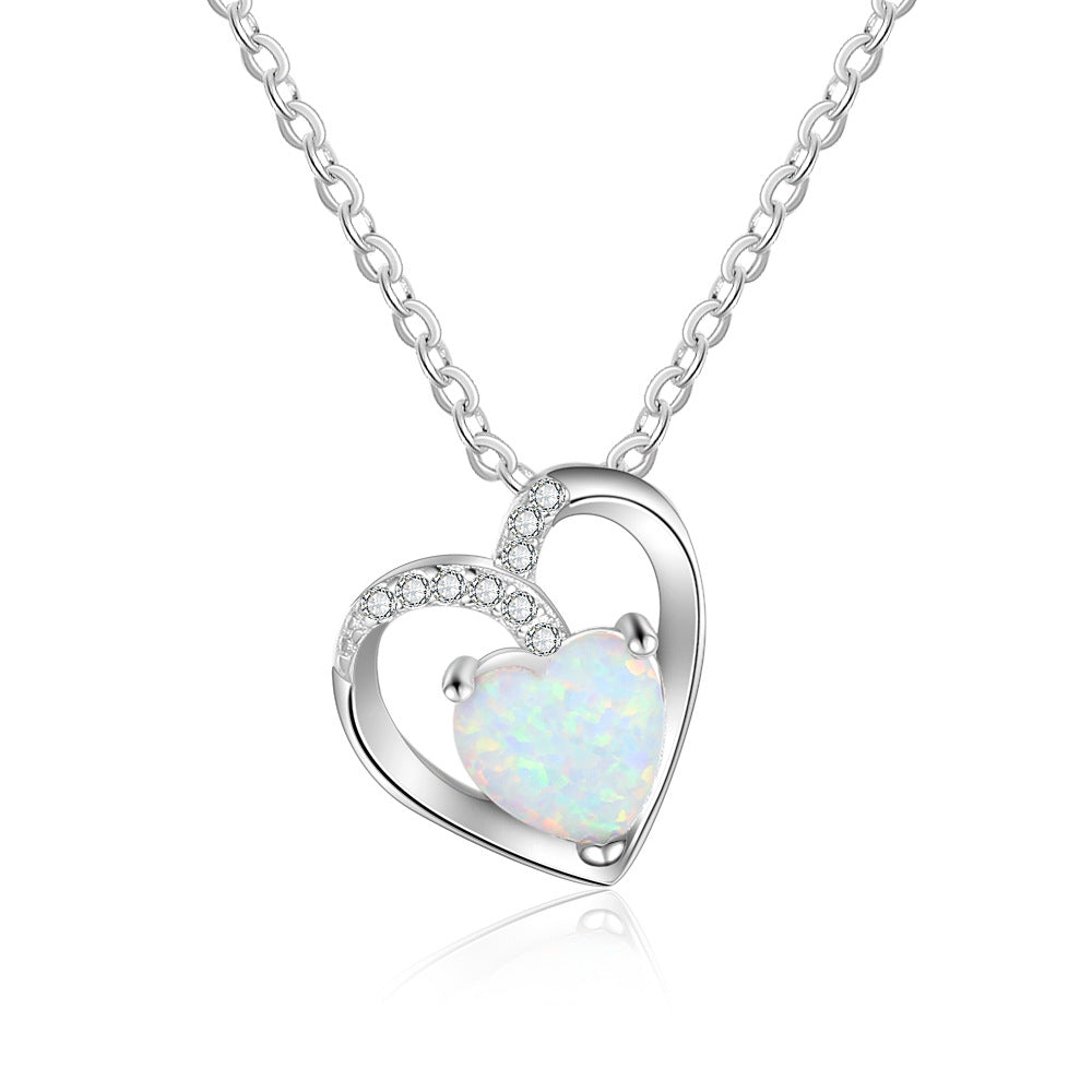 Our refined Hollow Heart Pendant Necklace is crafted with intricate detail in sterling silver. Featuring a gorgeously inlaid Heart Shape Opal and accentuated with twinkling zircons. this piece is truly one-of-a-kind. Its exquisite design exudes sophistication and luxury. making it a perfect gift for any special occasion.
