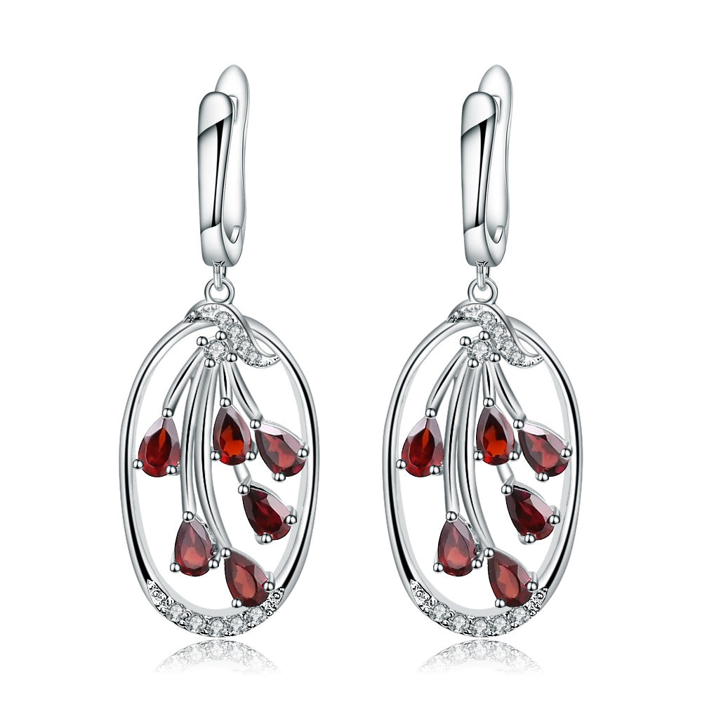 Bring some natural beauty to your look with this elegant silver drop earrings featuring a hollow oval pendant and Garnet flower pattern. Expertly crafted for durability and comfort. this earrings will be a go-to accessory for any occasion.