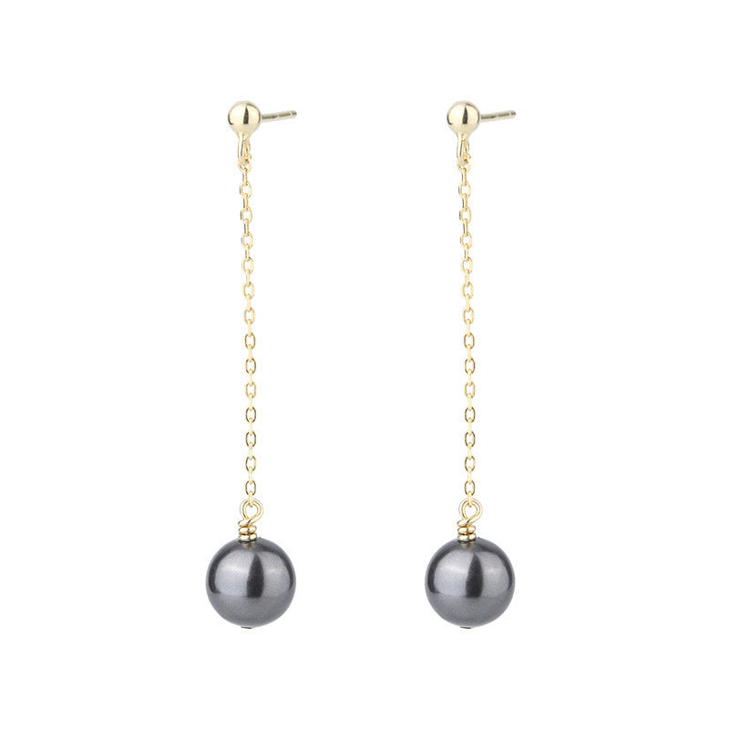 This earring is a stylish and elegant accessory with a black pearl pendant. symbolizing wisdom and mystery. It complements the long tassels and adds a sense of dynamism and agility.