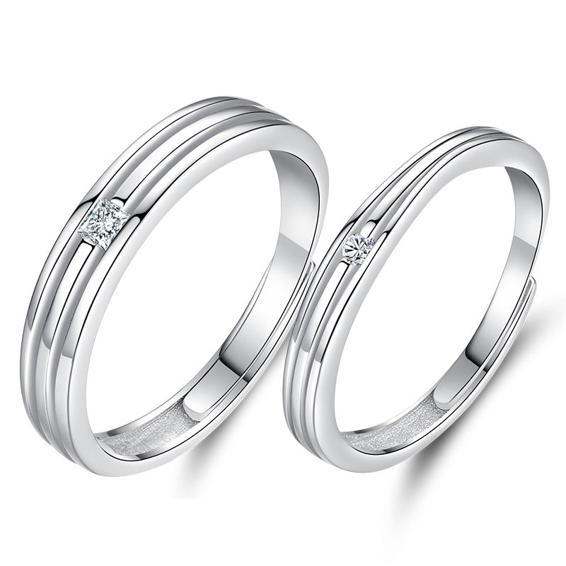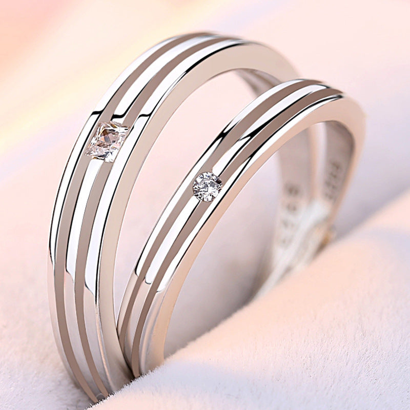 This unique Stripe with Zircon Silver Couple Ring is perfect for couples. It features an adjustable opening. so you can find the perfect fit. The strip detailing is accentuated with a sparkling zircon for an added touch of sophistication and glamour.