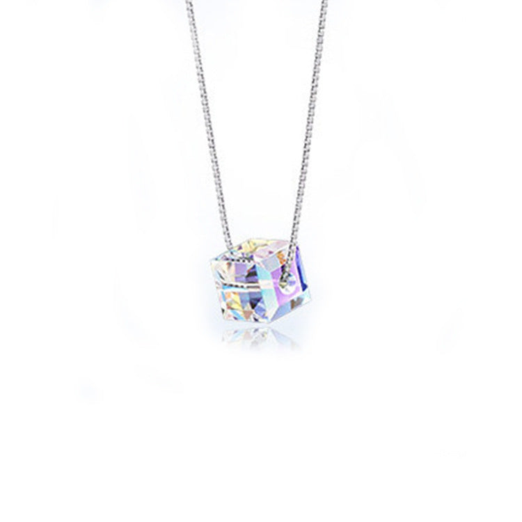 This sophisticated necklace features a sparkling square cube white crystal pendant. Crafted from gleaming sterling silver. this necklace is guaranteed to turn heads and make a stunning accessory for any outfit.