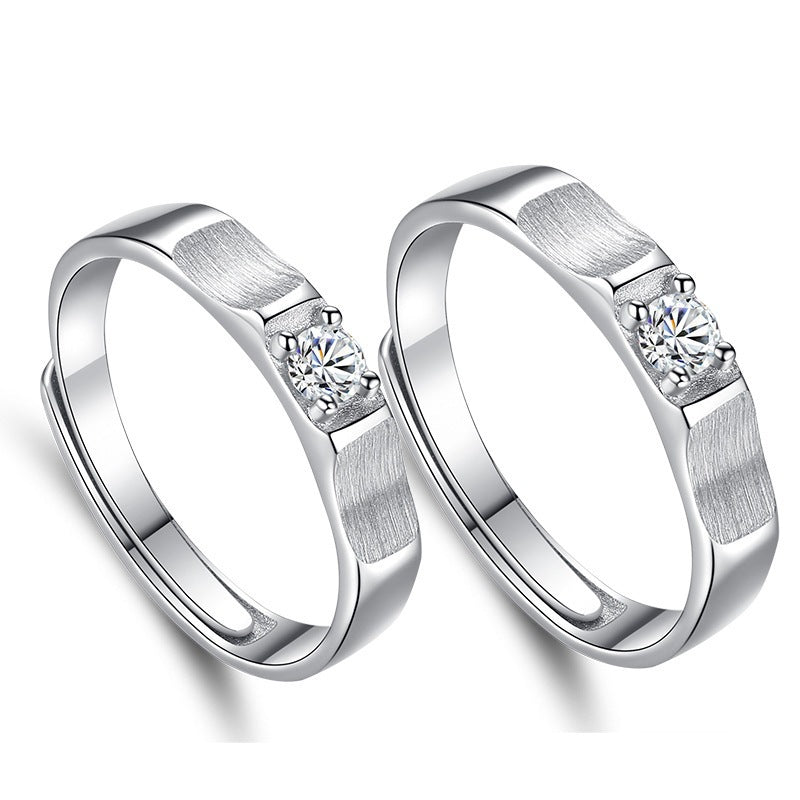 Enjoy matching style with these Zircon Frosting Silver Couple Rings. crafted with an adjustable opening for a comfortable fit. The unique frosting wave surface and a round Zircon detail provide an attractive and sophisticated look.