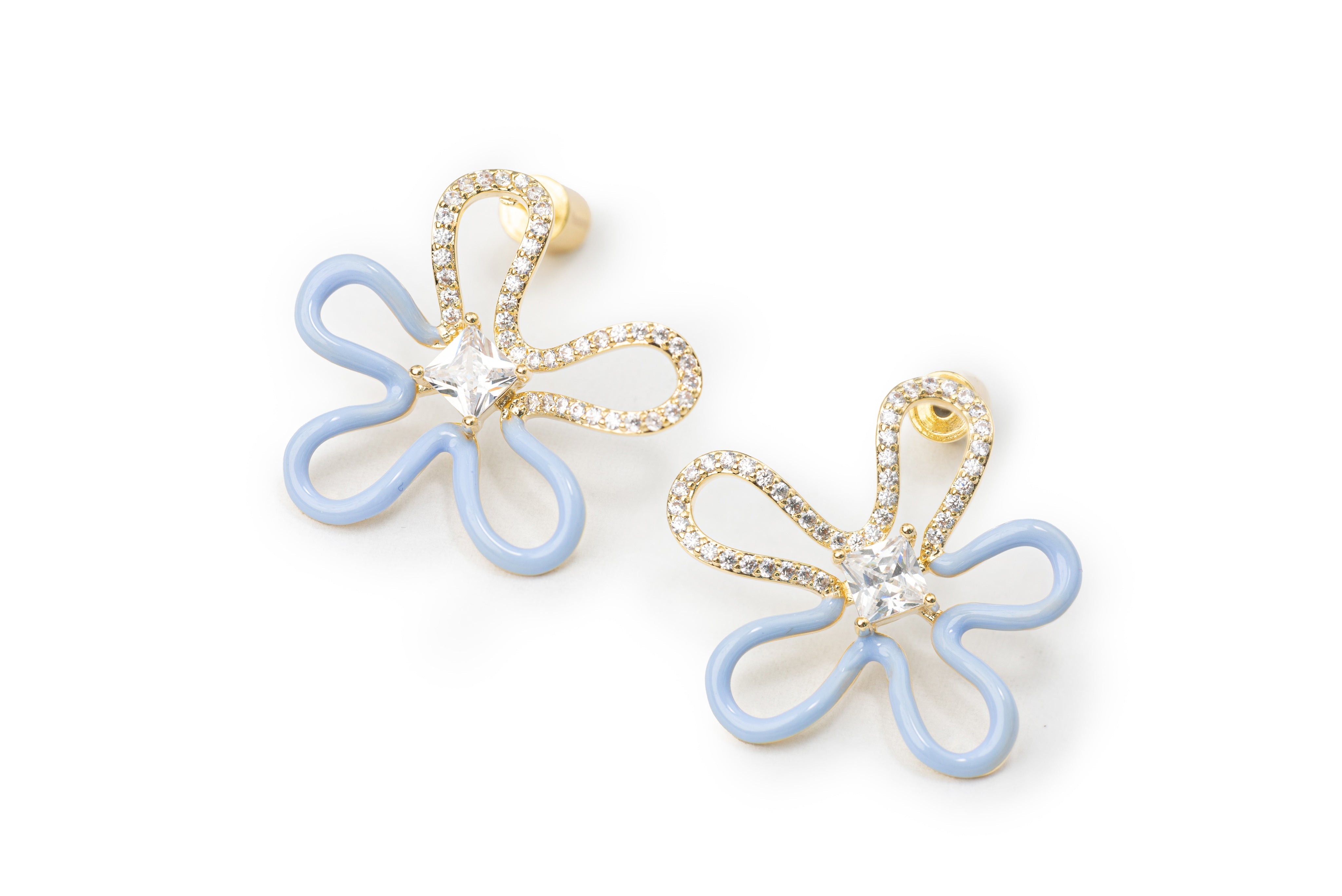Our Ocean Blue Bi-Color Flower Studs feature a stand-out two-tone design. This stylish earrings is perfect for any occasion. from casual to formal. Showcase your unique style with an eye-catching accessory that's sure to turn heads.