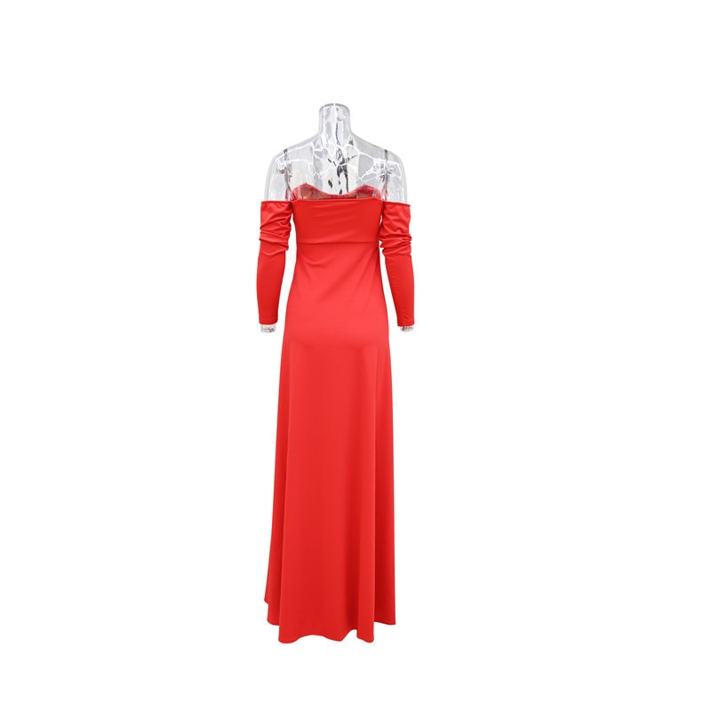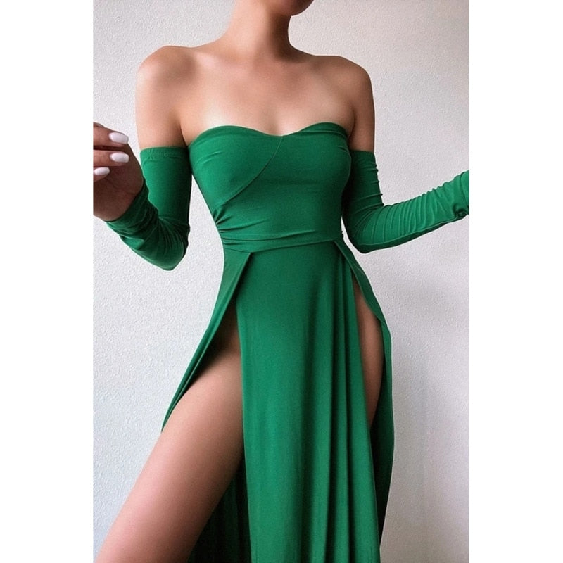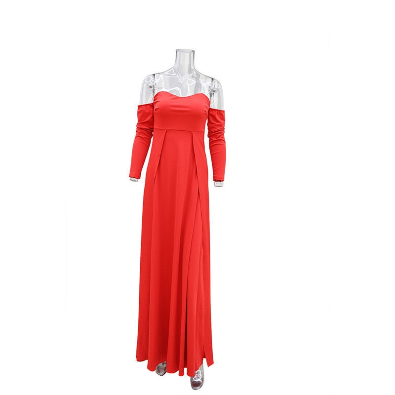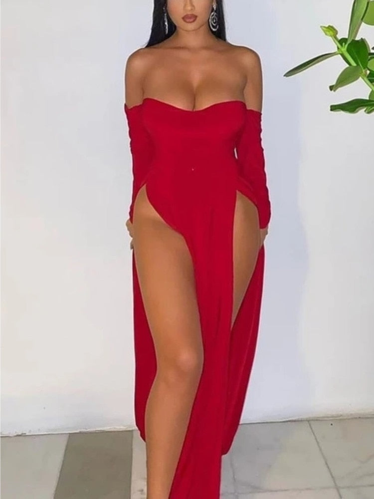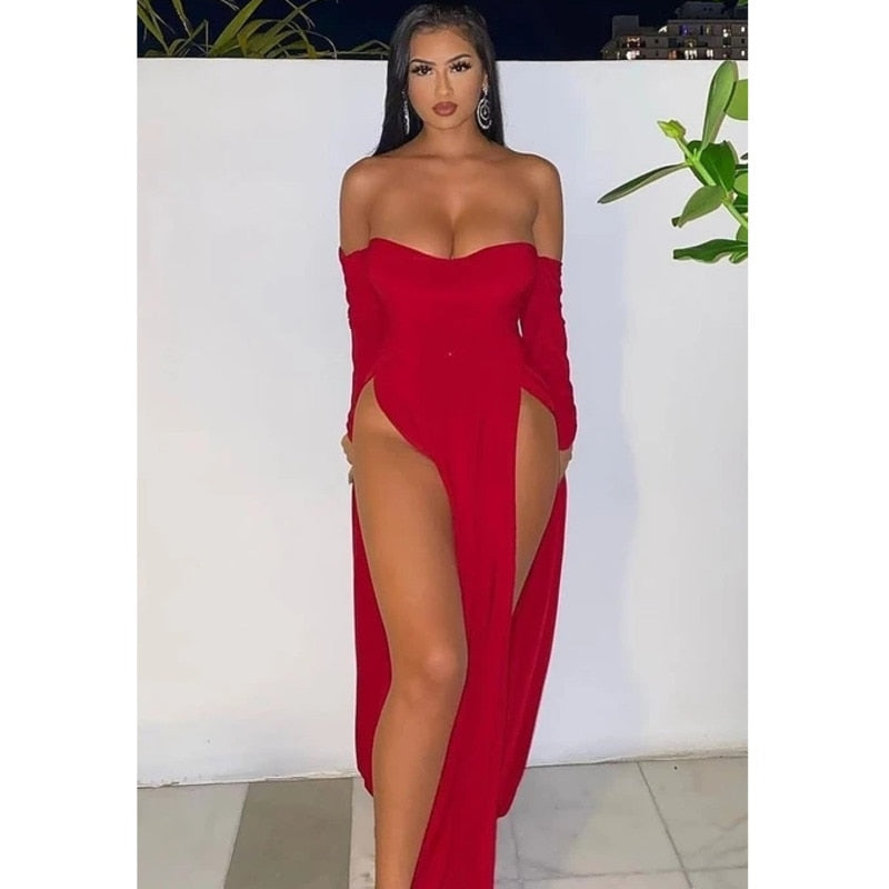 Off Shoulder Sexy Long Dress Women Elegant Evening High Split Celebrity Dresses Backless Bodycon Christmas Dress