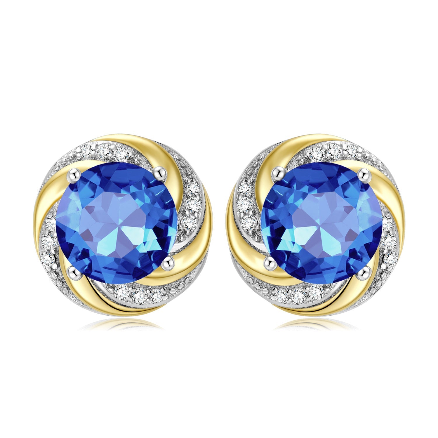 These Vortex Round Shape Blue Zircon Silver Stud Earrings showcase a one-of-a-kind design. The eye-catching vortex pattern inlays a Round Shape Blue Zircon in the center. making them a stunningly unique addition to any jewelry collection.
