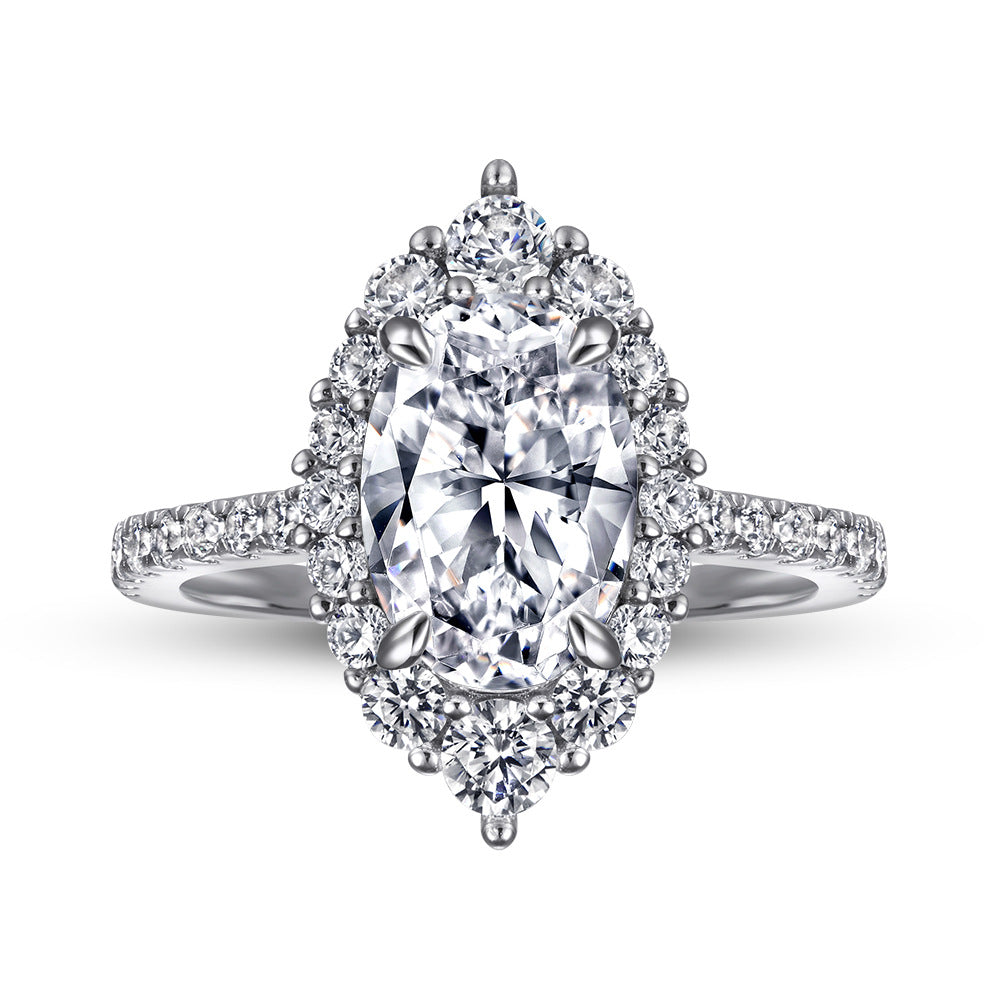 This exquisite silver ring for women features an oval zircon with a marquise shape soleste halo. creating a timeless look. The shimmering oval zircon stone catches the eye. while the halo of smaller zircon stones adds a touch of sparkle. Perfect for everyday or special occasions.