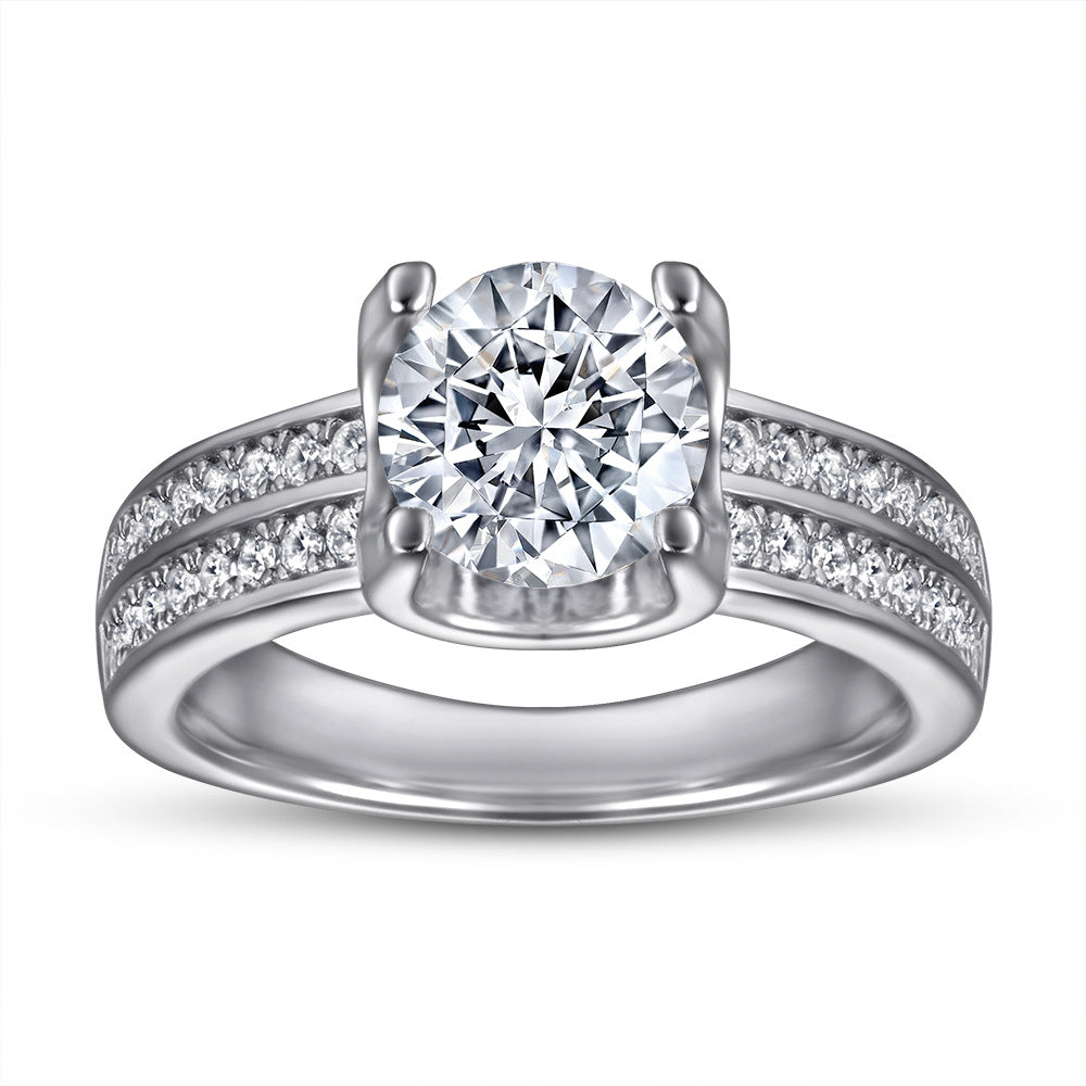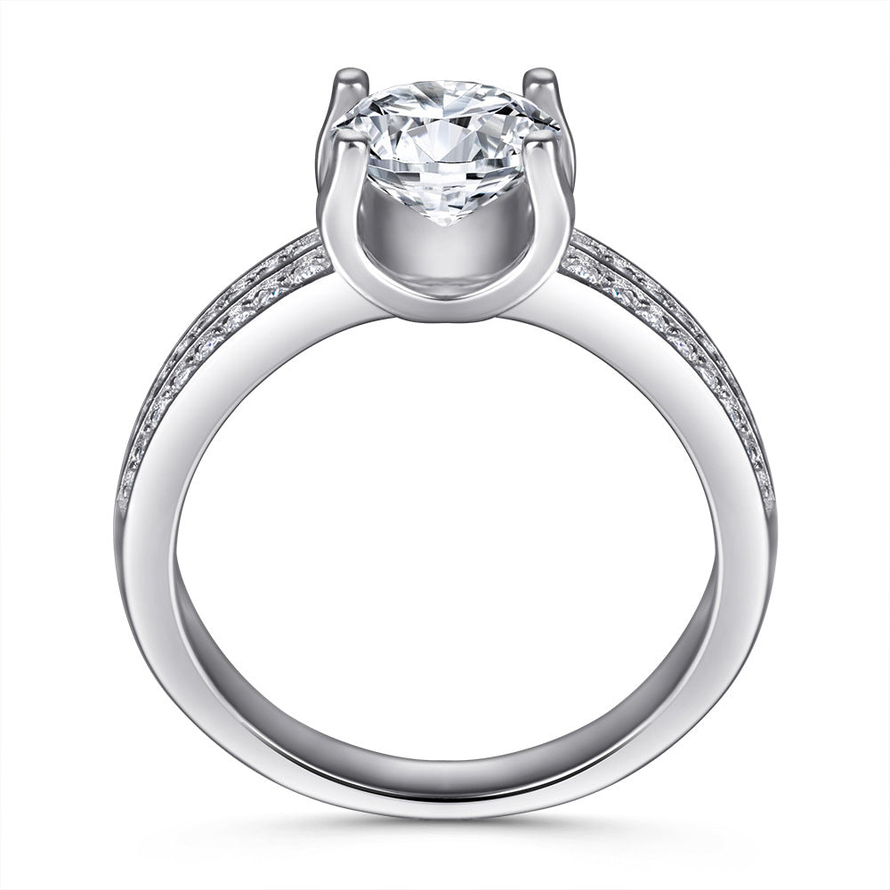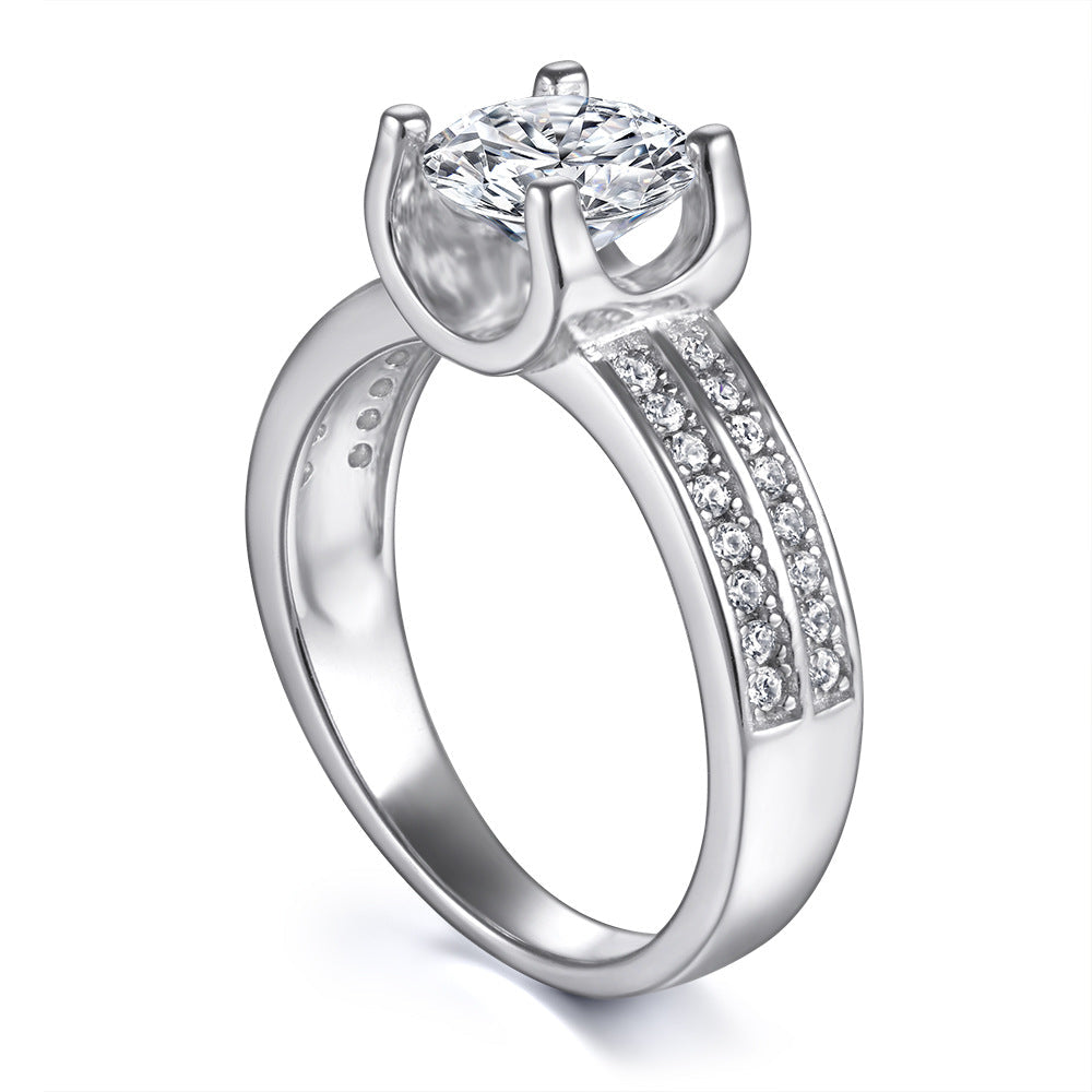 This Oxhead Four Prongs Round Zircon Double-row Cathedral Silver Ring is a timeless and timelessly classic style of jewelry. perfect for any occasion. The ring features a round-cut zircon center set in the stylish Oxhead Four Prongs and ring arm decorating with double-row zircons. all crafted from sterling silver. With this stunning combination of design and materials. you'll shine with class and sophistication at any event.
