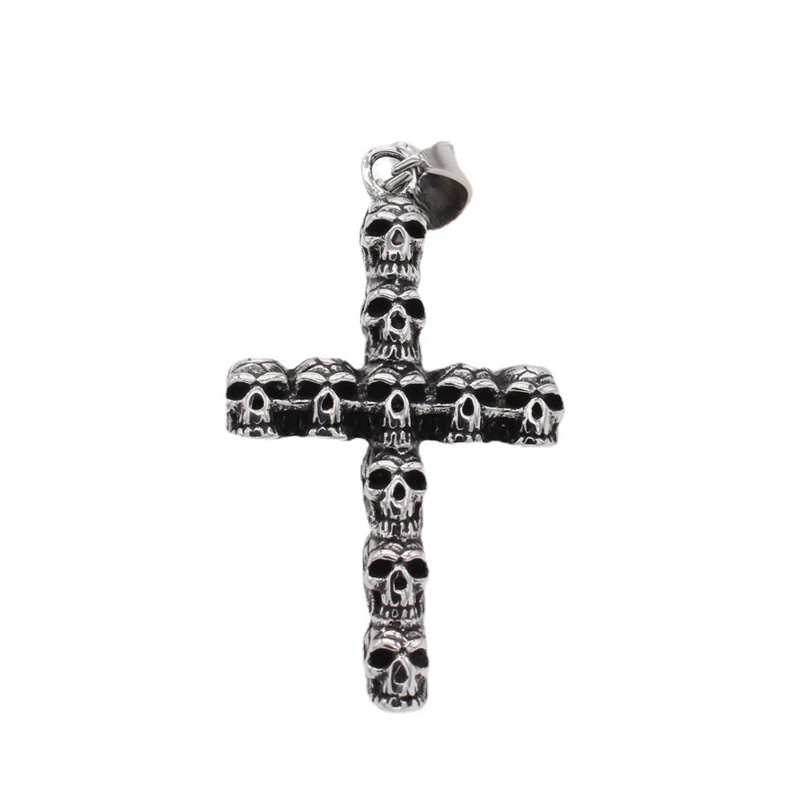 This String of Skull Latin Cross Pendant is made with premium titanium steel. creating a stylish look of sophistication. Strings of skull heads make up the distinctive Latin Cross design. giving it an exclusive and tasteful feel. Don this pendant to express daring style and edginess.