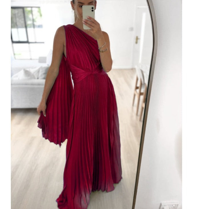 Party Dress Summer New Diagonal Shoulder Pleated Casual Dress for Women Fashion Loose Holiday Evening Long Women Dress Elegant