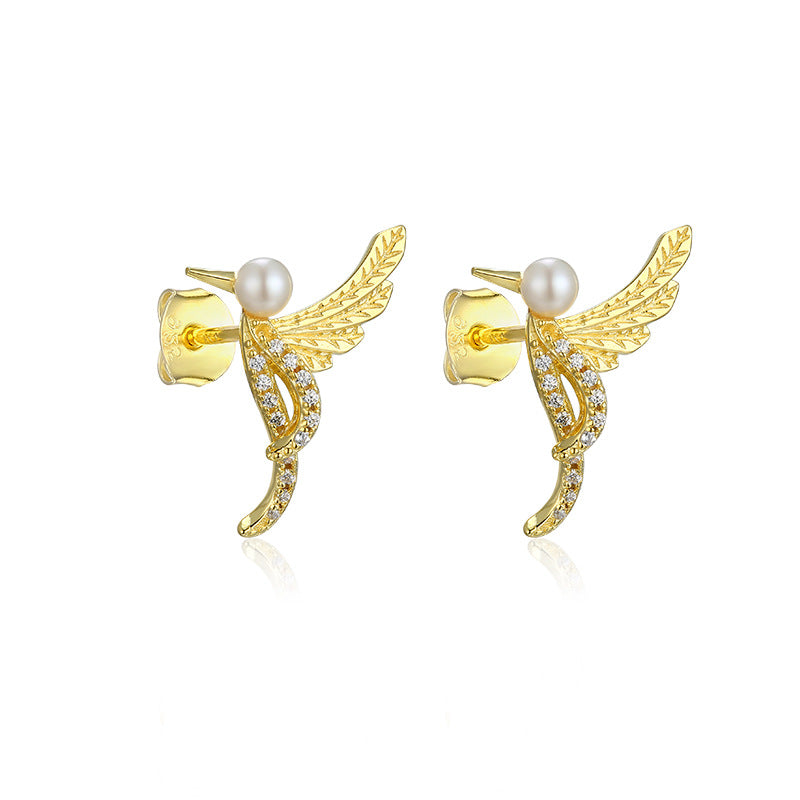 This Zircon Bird with Pearl Silver Studs Earrings for Women feature a delicate little bird designs with sparkling Zircon and a pearl. It's perfect for those wanting to add a touch of glamour to their look.