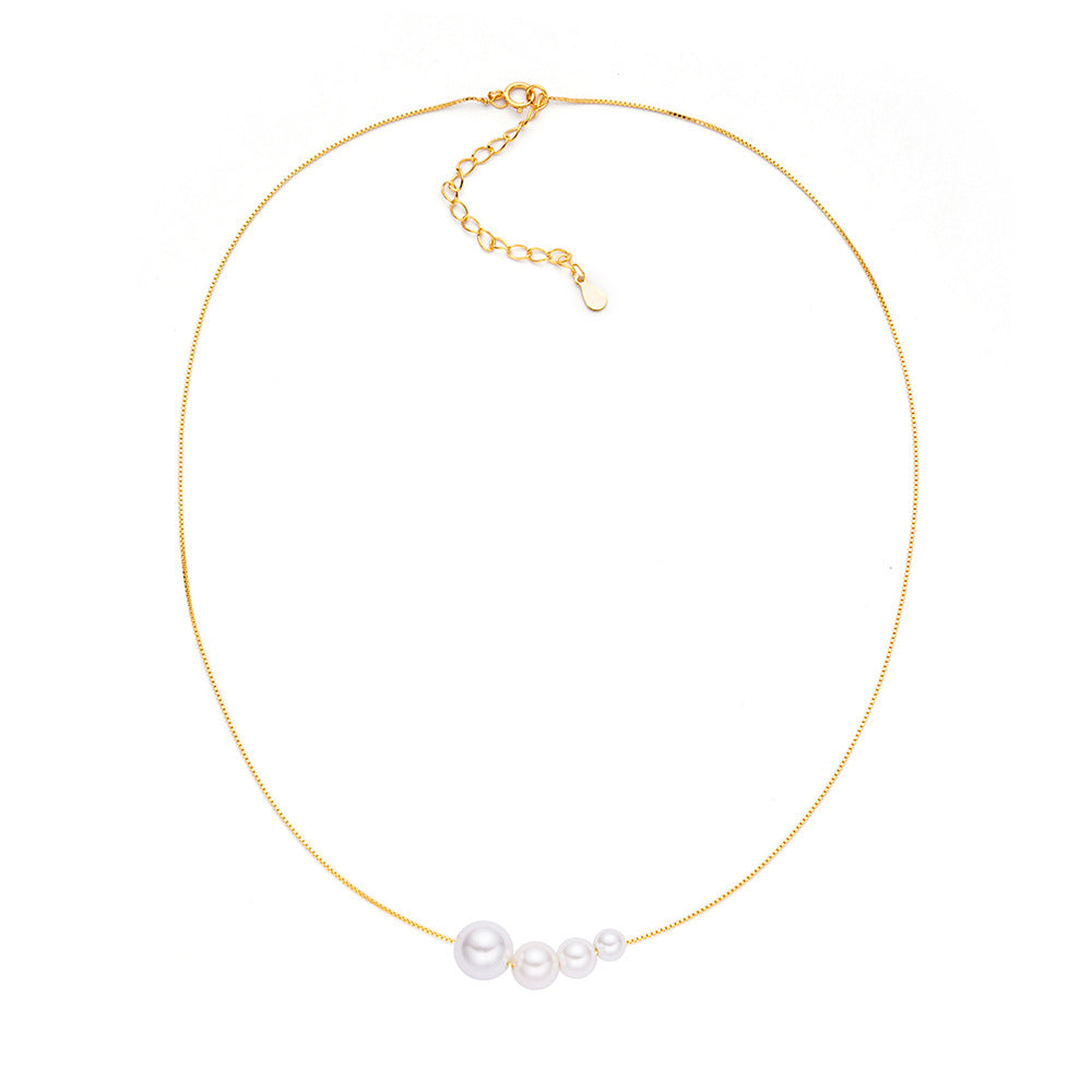 This Four Round Pearl Silver Necklace shines with delicate sophistication. Crafted with four pearls of different sizes. from big to small. the stunning pendant adds a touch of class and elegance to any outfit. The perfect accessory for any formal occasion.