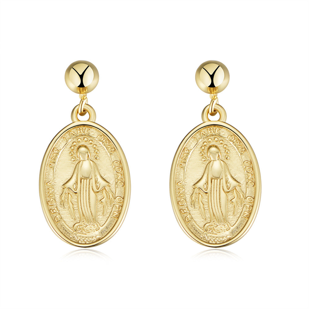 Look elegant and eye catching with this classic Oval Virgin Mary Relief Silver Drop Earrings. This earrings feature an oval pendant with Virgin Mary relief pattern. crafted with exquisite attention to detail. Wear this timeless design to any event. and you won't regret it!