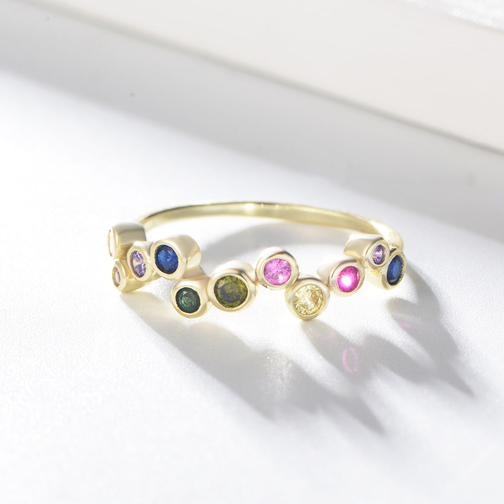 This Rainbow Zircon Beading Design Sterling Silver Ring is crafted with a row of beautiful Rainbow color Zircons. providing a unique and elegant look. Plated in gold. the delicate design of the ring makes it perfect for all occasions. giving you a stylish piece of jewelry to wear on any special occasion.