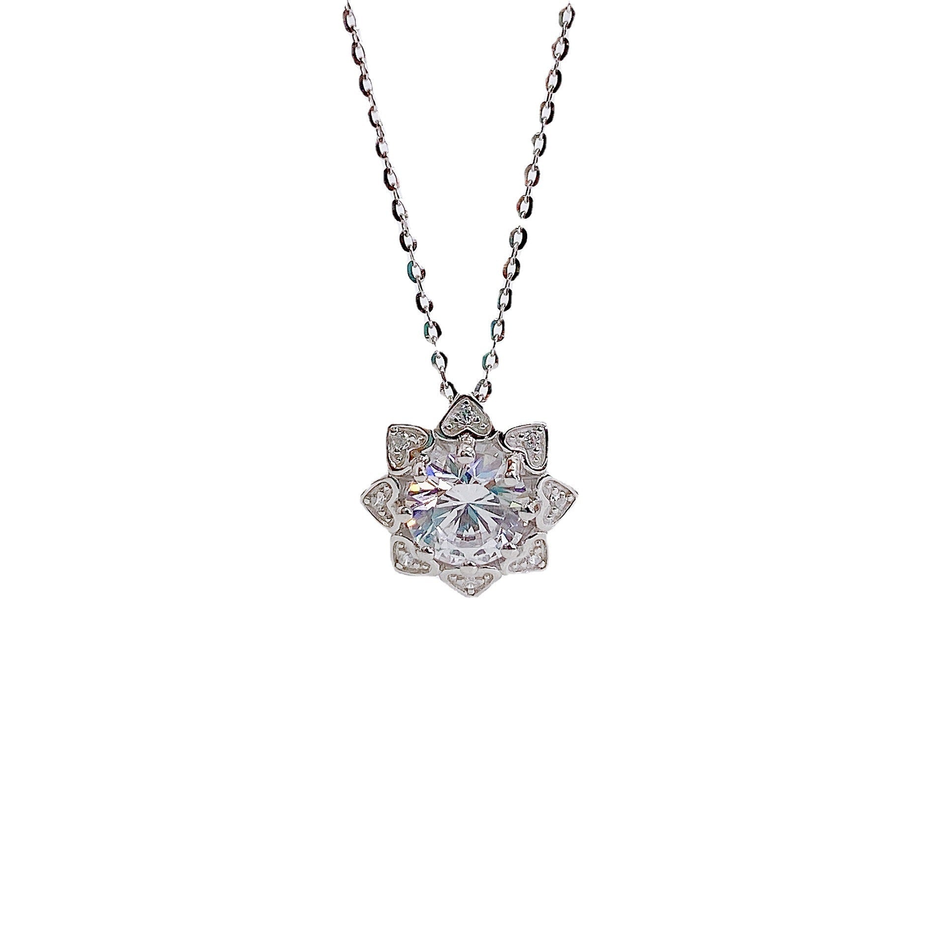 This Round Zircon Heart-shape Petal Pendant Silver Necklace is perfect for any occasion. Expertly crafted with a sparkling round Zircon pendant surrounded by delicate zircon heart-shaped petals. it is an elegant and timeless piece of jewelry.