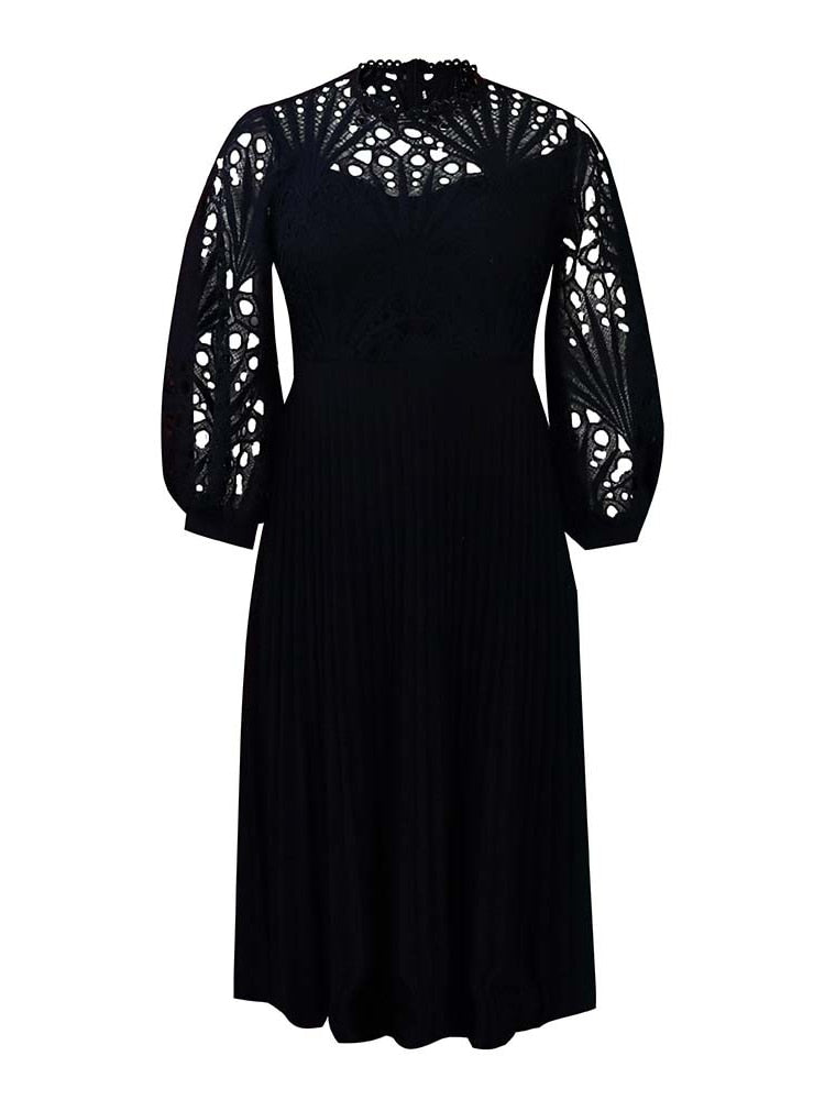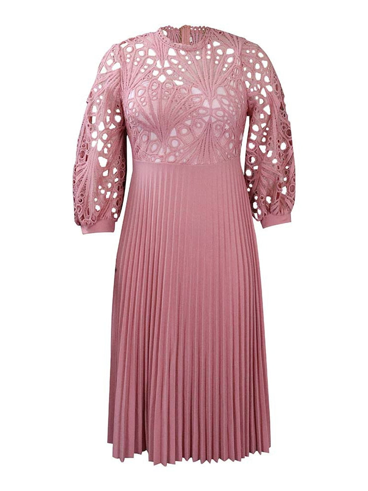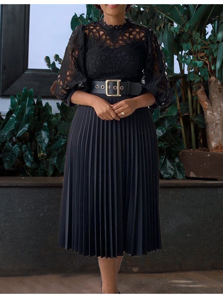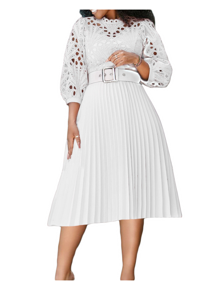 Plus Size Elegant Lace Cutout Midi Dress Sexy Ruched Waistband A-line Evening Dresses Casual Vestidos Mujer Primavera Verano