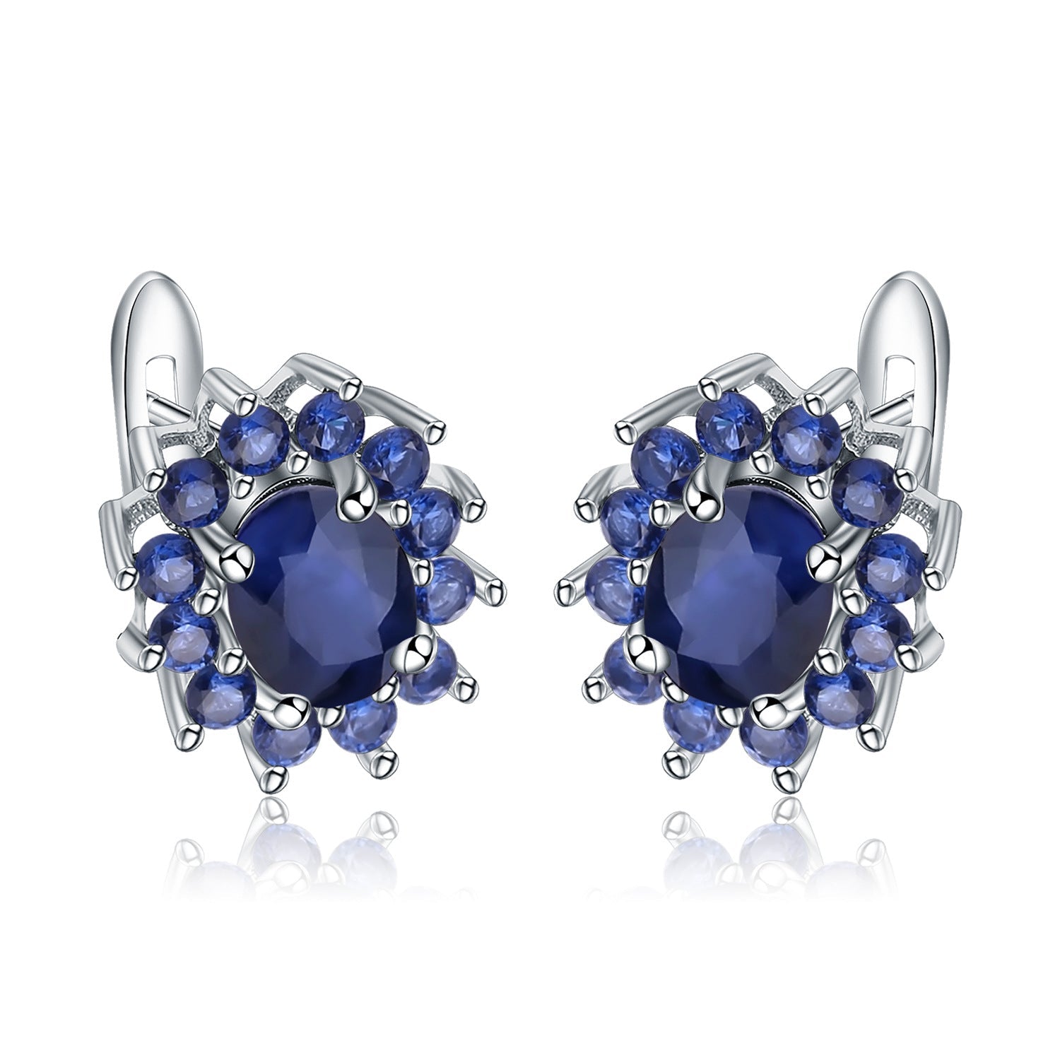 This European Style Silver Studs Earrings for Women are exquisitely crafted. featuring an oval shape dark blue crystal surrounded by smaller round crystals as halo. like a sun. The timeless design is sure to make a lasting impression.