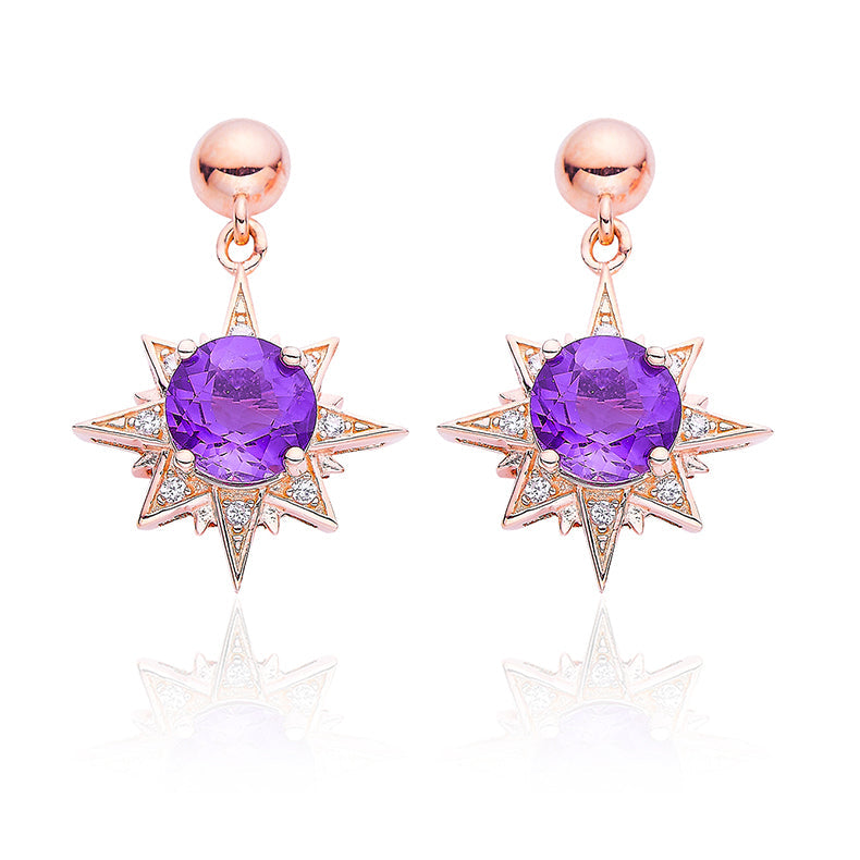 This beautiful star studs feature a rose gold colour with a dazzling purple crystal stone. perfect for adding a subtle yet sophisticated touch of classic glamour to any outfit. The perfect blend of traditional style and luxurious detailing. this earrings will make a timeless addition to any jewellery collection.