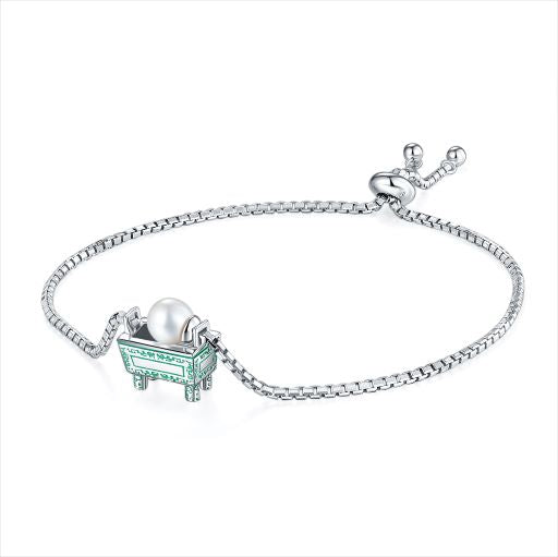 This Quadripod Ding Pearl Enamel Silver Bracelet is a sophisticated accessory. featuring Quadripod Ding and Pearl accents. Crafted from sterling silver. this bracelet adds a touch of elegance to any look.