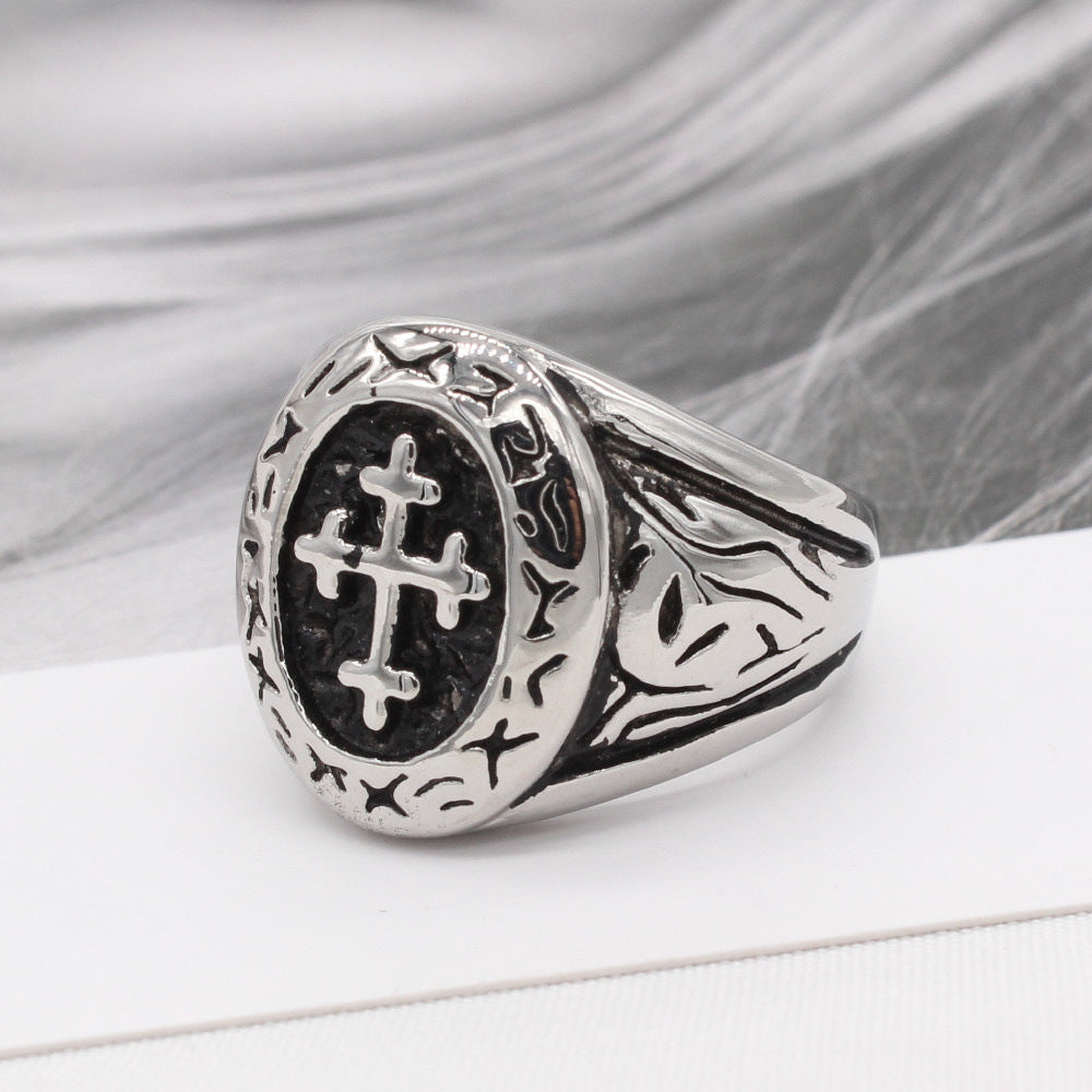This Punk Saint Latin Cross Oval Titanium Steel Ring for Men is crafted with quality titanium steel and detailed with a unique oval shape and a Saint Latin Cross design. An elegant and eye-catching accessory for any ensemble. it's perfect for expressing your faith.