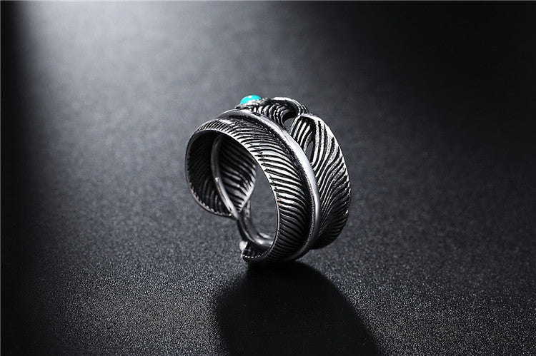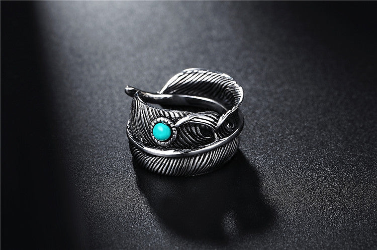 Discover the exquisite Fashion Personality Creative Takahashi Turquoise Feather Titanium Steel Ring. a unique piece from the Hoobd Collection. This foreign trade jewelry wholesale item is designed to add a touch of creativity to your everyday style.