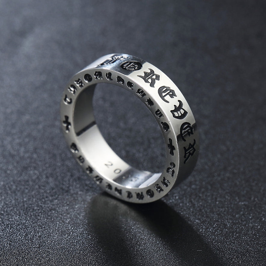 This Six Character Mantra Scripture Titanium Steel Ring for Men features a quality design etched with a six character mantra scripture pattern. Made of titanium steel. making it both strong and long-lasting. this ring is the perfect choice for the stylish man.