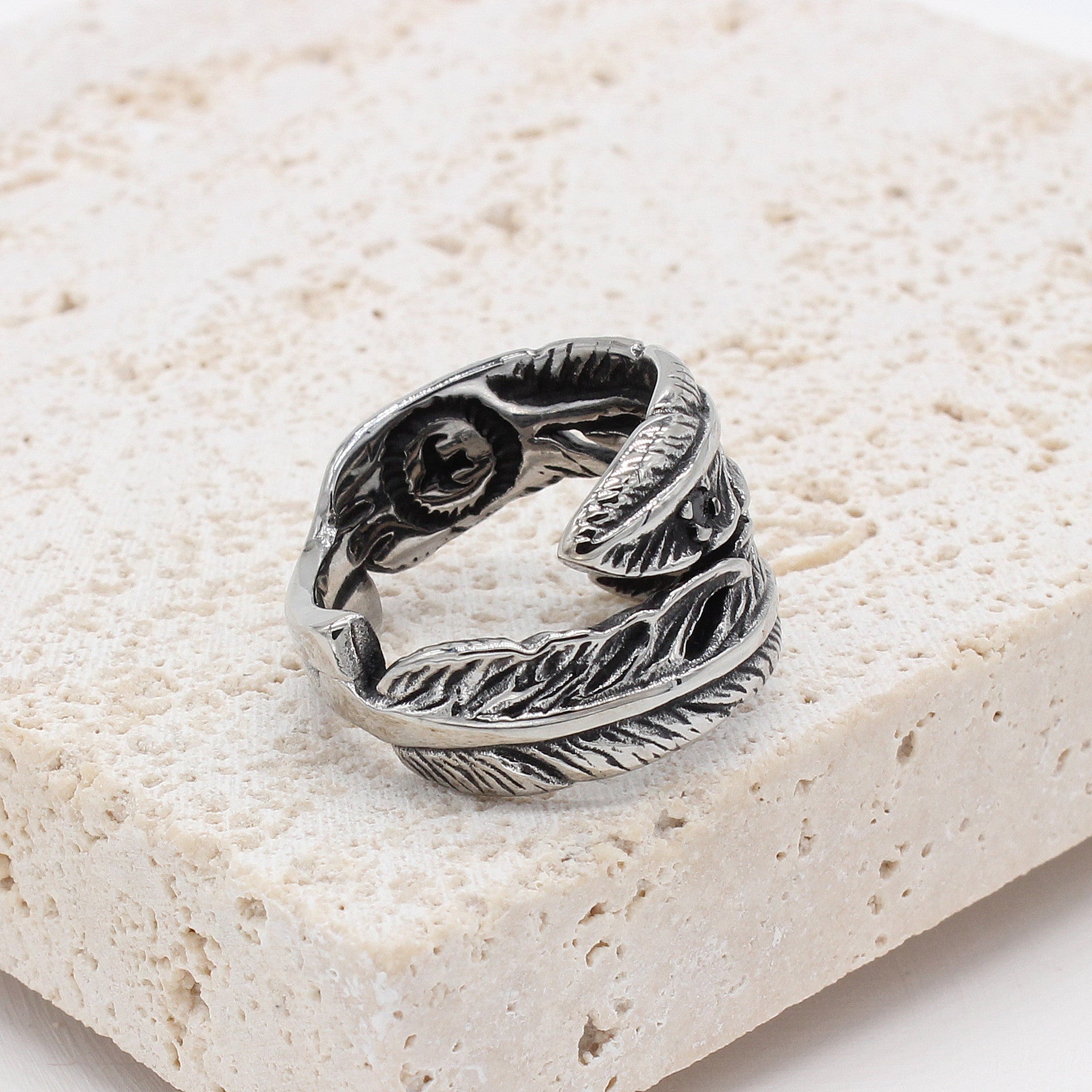 Discover the unique blend of retro design and modern craftsmanship with our Personalized Retro High Bridge Feather Men's Titanium Steel Ring. This stunning piece from the Hoobd Collection is perfect for everyday wear. adding a touch of individuality to any ensemble.