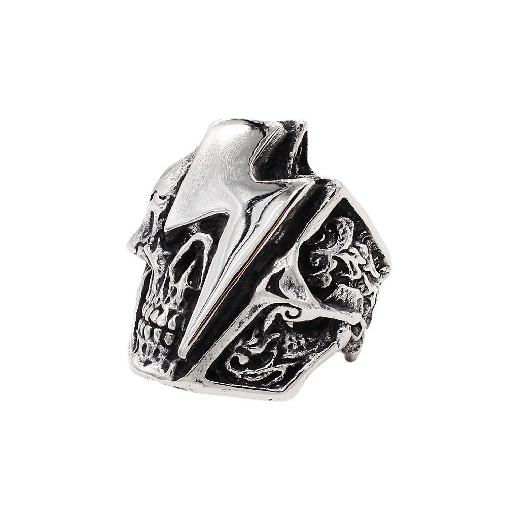 Get ready to make a statement with our wholesale European and American-inspired personalized retro skull head ring. Crafted with high-quality titanium steel. this men's lightning ring is designed to exude an edgy and unique vibe.