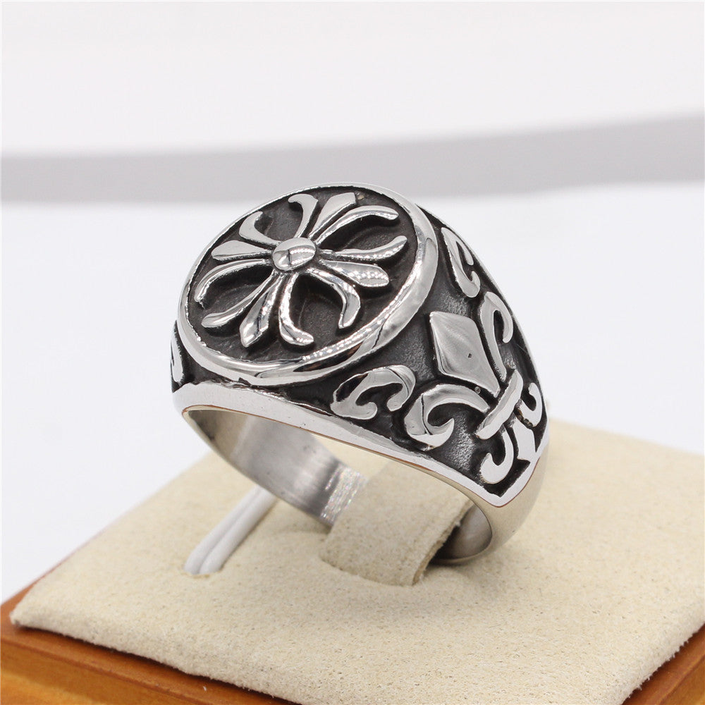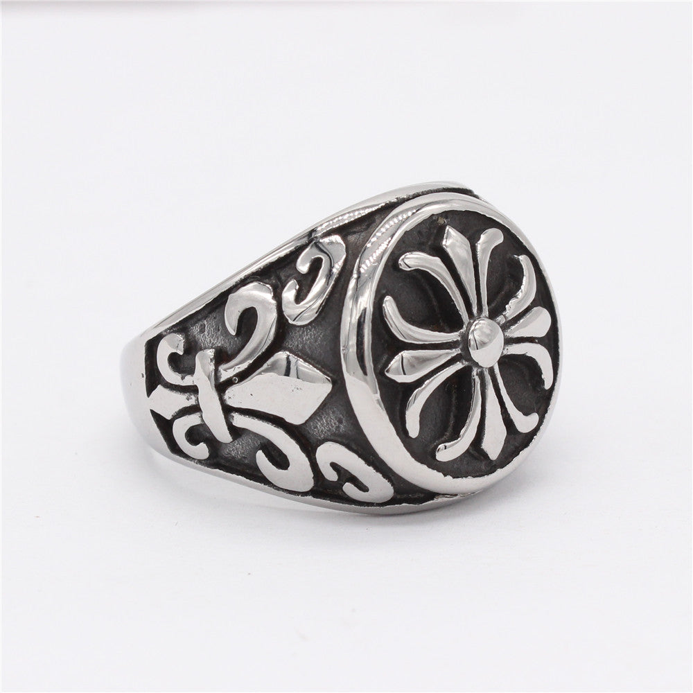 This titanium steel Retro Relief Cross Flower Round Ring for Men offers a distinctive blend of style and practicality. Features a Relief Cross Flower in the center and Childern Flower on the ring arm. this ring is sure to draw compliments. Guaranteed to be durable and long-lasting. the titanium steel provides strength and stability.