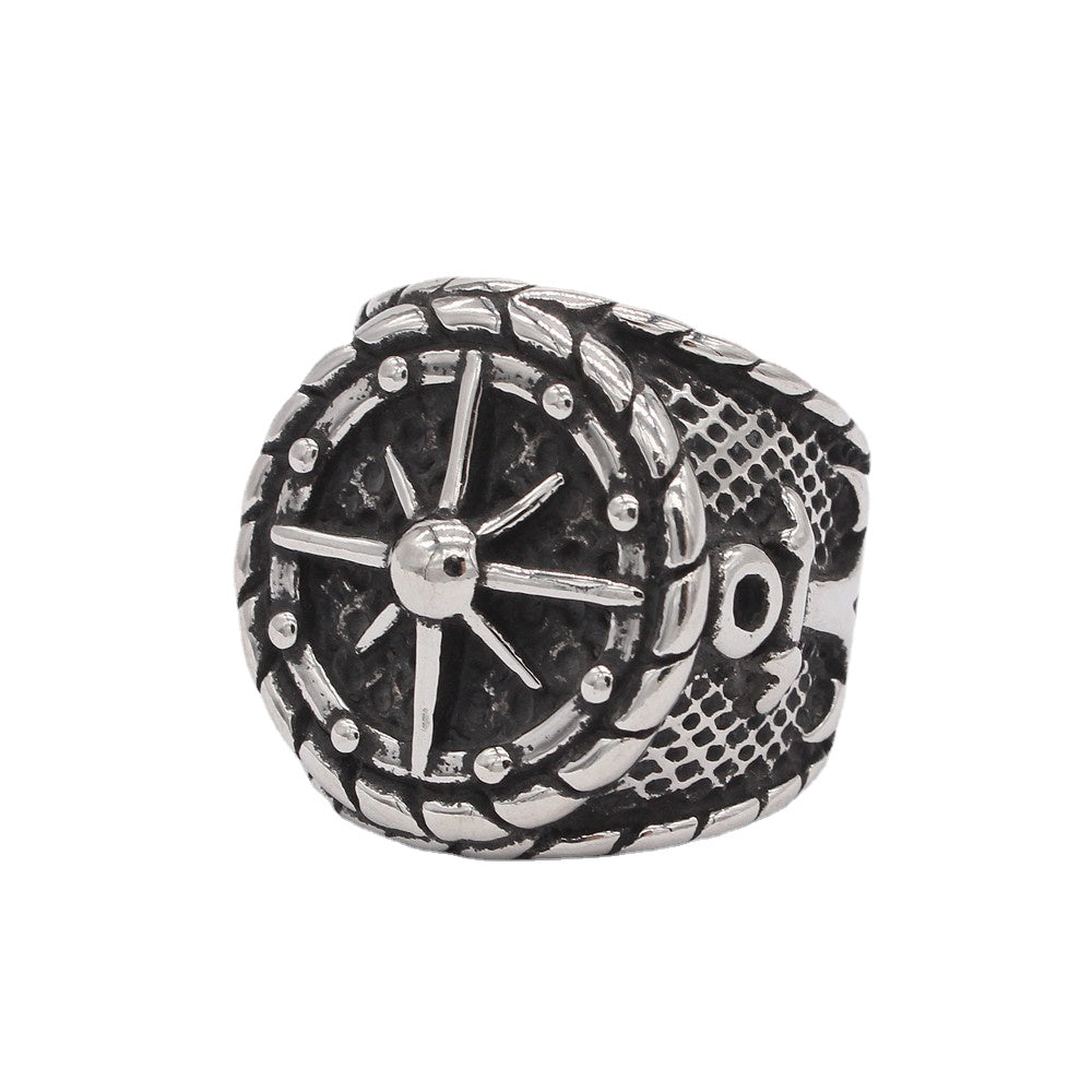 Unleash your adventurous spirit with our Foreign Trade Jewelry Wholesale European and American Personality Vintage Pirate Anchor Rudder Men's Titanium Steel Ring. This ring from the Hoobd Collection is designed for everyday wear. making it a perfect addition to your accessories collection.