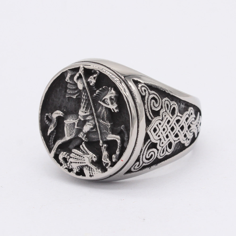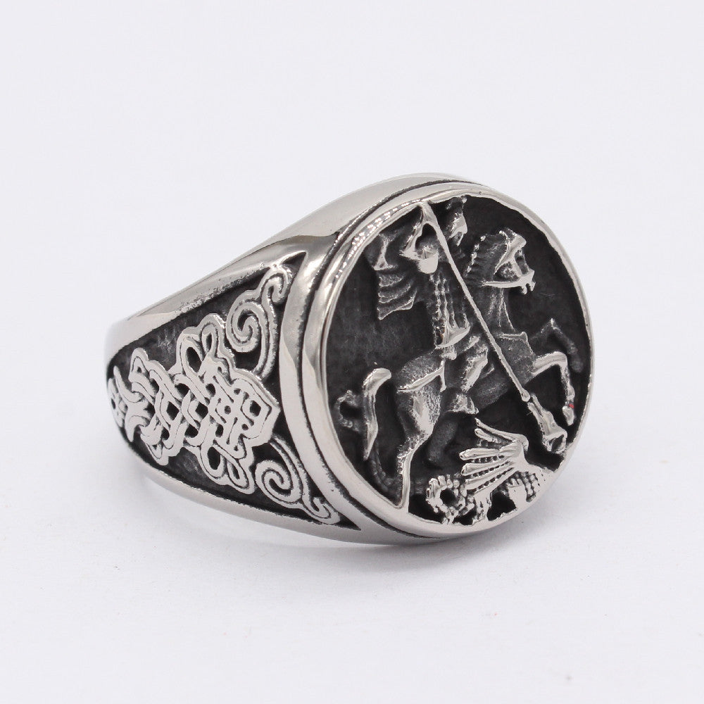Unleash your inner warrior with the European and American Retro Knight Riding Ring. Crafted with titanium steel. this bold and rugged military ring combines historical charm with modern style. making it the perfect accessory for everyday wear.
