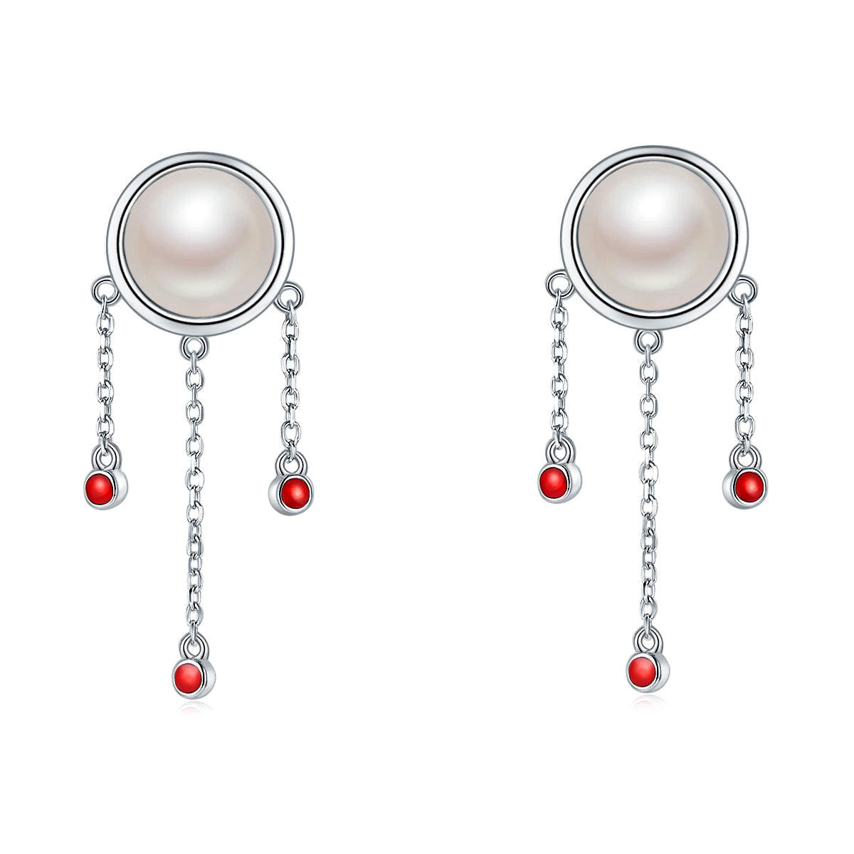 This Rattle Drum Pearl Tassels Enamel Silver Drop Earrings create a unique and stylish look with their enamel and pearl detailing. The eye-catching combination of sterling silver. enamel and pearl gives a modern. sophisticated touch to any ensemble.