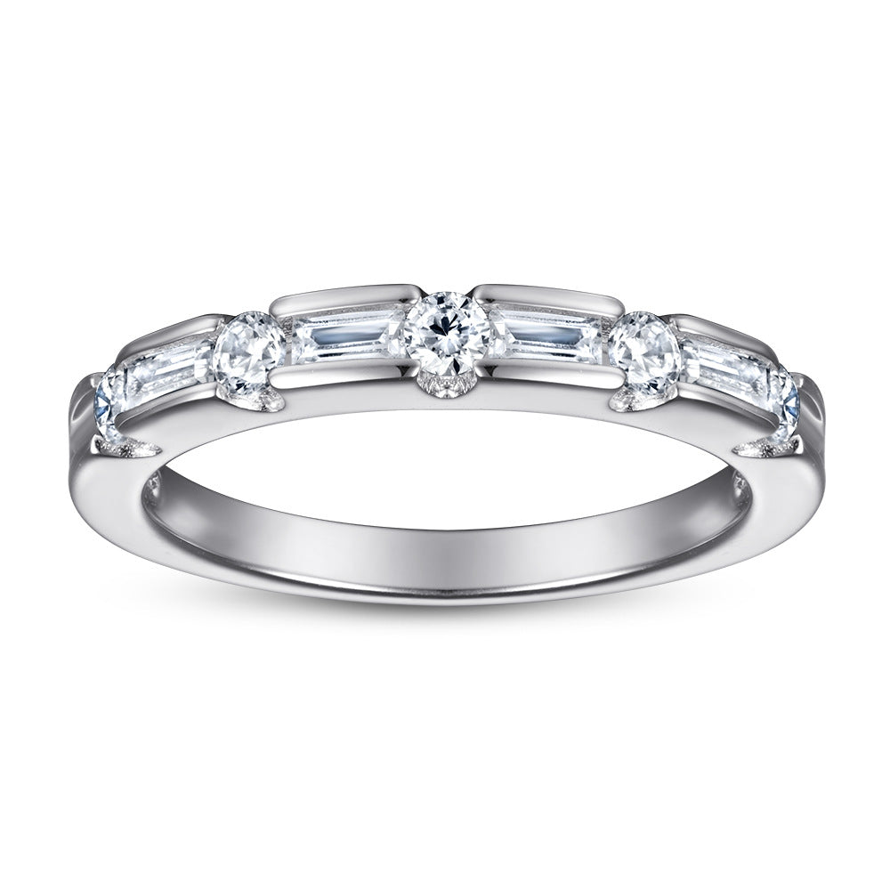 This Beading Baguette Cut and Round Zircon Silver Ring for Women is perfect for those who appreciate timeless elegance. Crafted with sterling silver and studded with Baguette Cut Zircons and round zircons. it offers a sophisticated look and luxurious feel. The perfect finishing touch to any outfit.