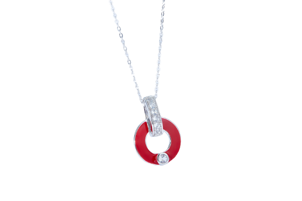 This Red Circle Enamel Silver Necklace for Women is a statement piece with a sophisticated twist. Crafted from sterling silver with a glossy red enamel circle pendant. this necklace will add charm to formal and casual looks alike. Its delicate chain makes it comfortable to wear all day.