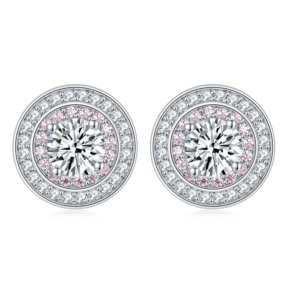 This colourful round zircon soleste halo with pink zircon silver studs earrings will be a dazzling addition to any woman's wardrobe. The double Soleste halo setting provides a brilliant sparkle from the zircon stones that are sure to turn heads. Perfect for any special occasion.