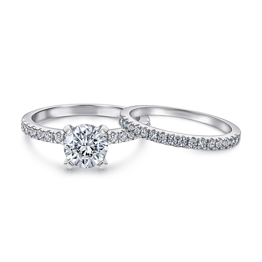 This exquisite Round Zircon with Half Eternity Silver Ring Set is the perfect addition to your jewelry collection. Crafted with precision. each ring features a unique design: one Round Zircon ring and one Half Eternity ring. each decorated with half row small Zircons on the ring arm. Add an extra sparkle to your look with this beautiful set.