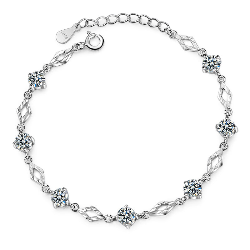 This elegant silver bracelet for women features a stunning design with round zircon and hollow rhombus accents. Perfect for special occasions. its delicate craftsmanship and sterling silver ensure longevity and beauty.